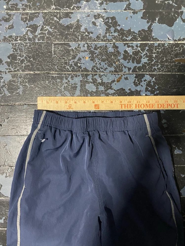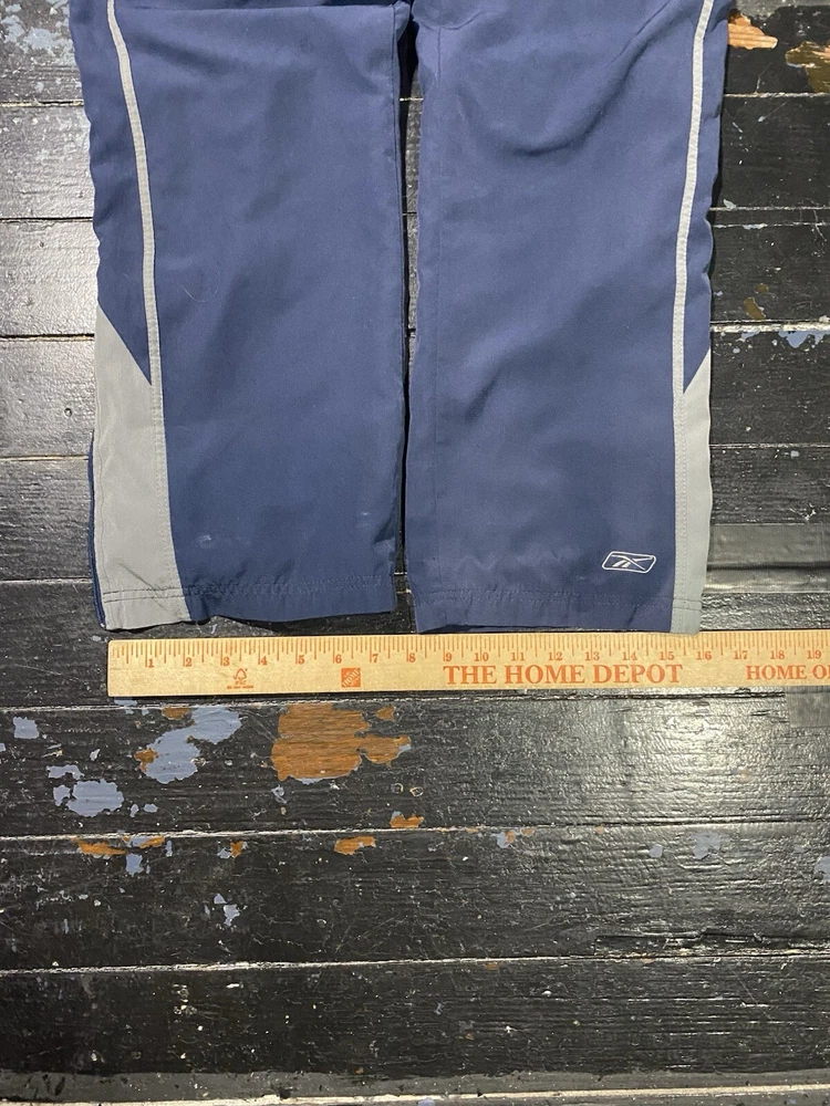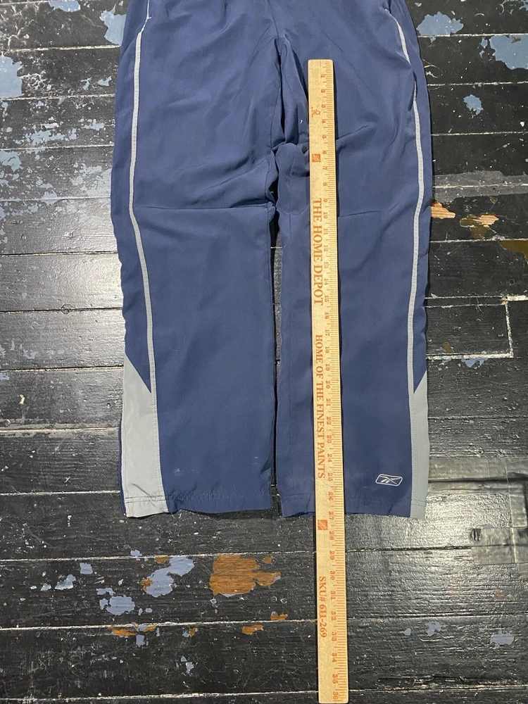 This is a pair of vintage Y2K Reebok Track Pants in a baggy style, designed for men in size small. They are in a classic blue color and are categorized as activewear pants. The pants are ideal for casual or athletic wear, providing both style and comfort. The Reebok brand brings a touch of nostalgia to these track pants, making them a trendy choice for any wardrobe. 2