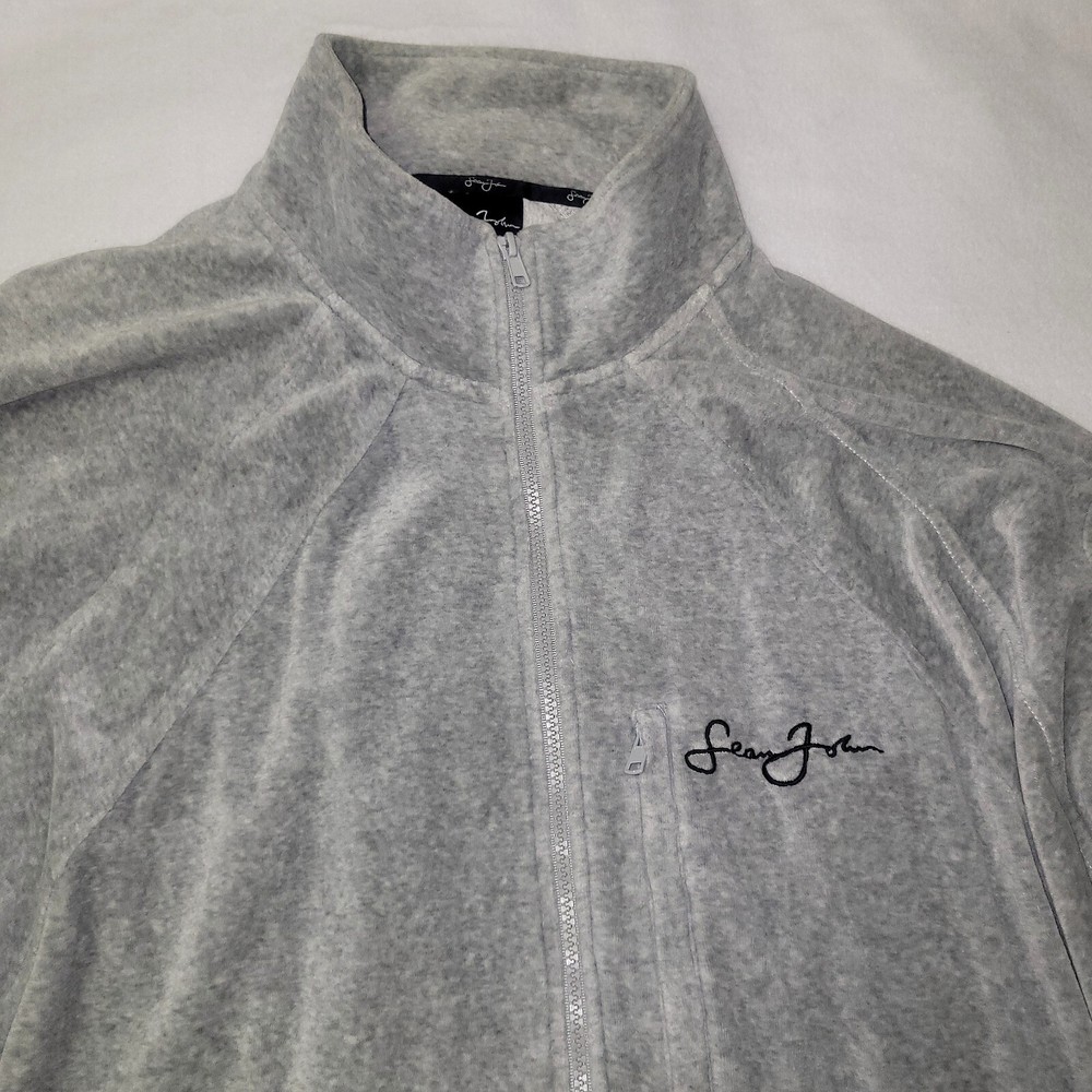 This Sean John track jacket is a must-have for any streetwear enthusiast. Made from a comfortable cotton blend velour fabric, this gray tracksuit comes in a size 3XL and features a collared neckline with a zipper closure. The long sleeves and baggy fit make it perfect for any occasion, whether you're hitting the gym, going out with friends, or just running errands. The jacket also includes several accents such as an embroidered logo and a zipper closure, adding a touch of style to your outfit. With pockets for added convenience, this tracksuit is machine washable and easy to care for. Don't miss out on this trendy and versatile piece that's perfect for any hipster, y2k, or streetwear look.