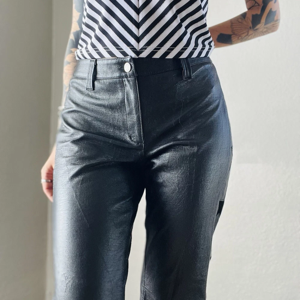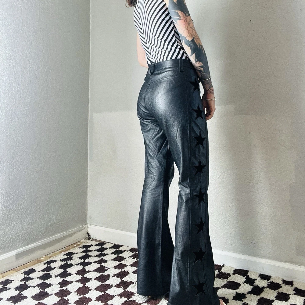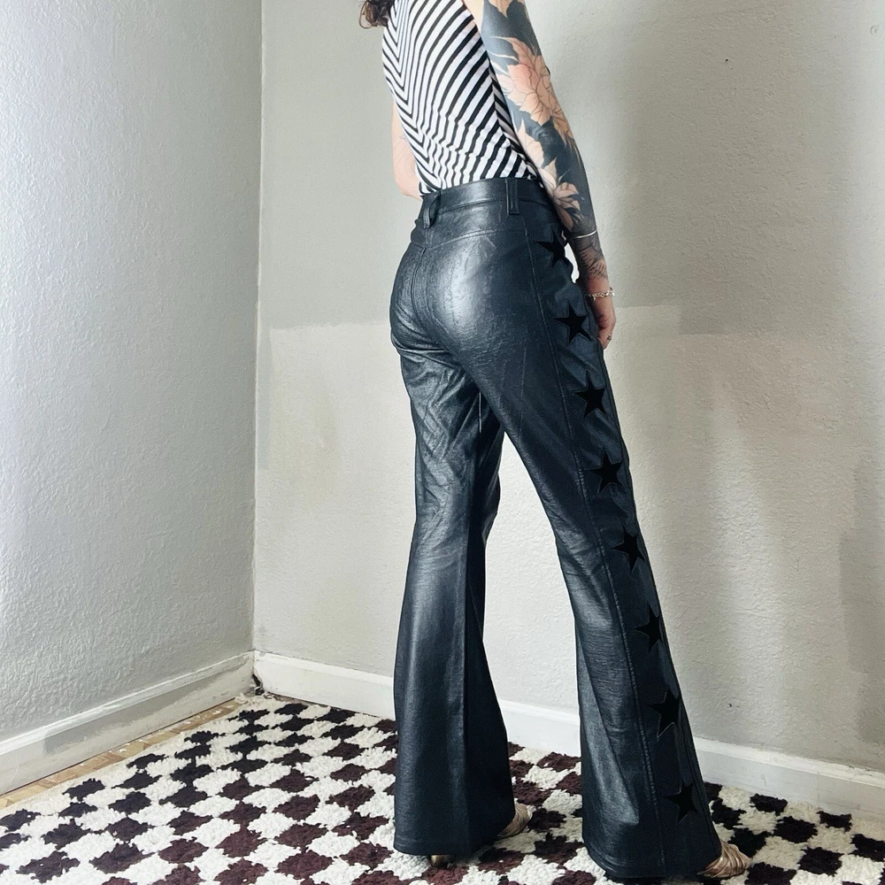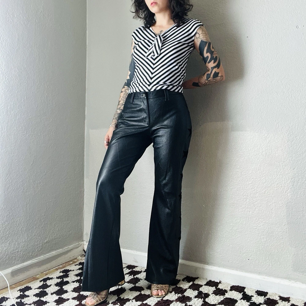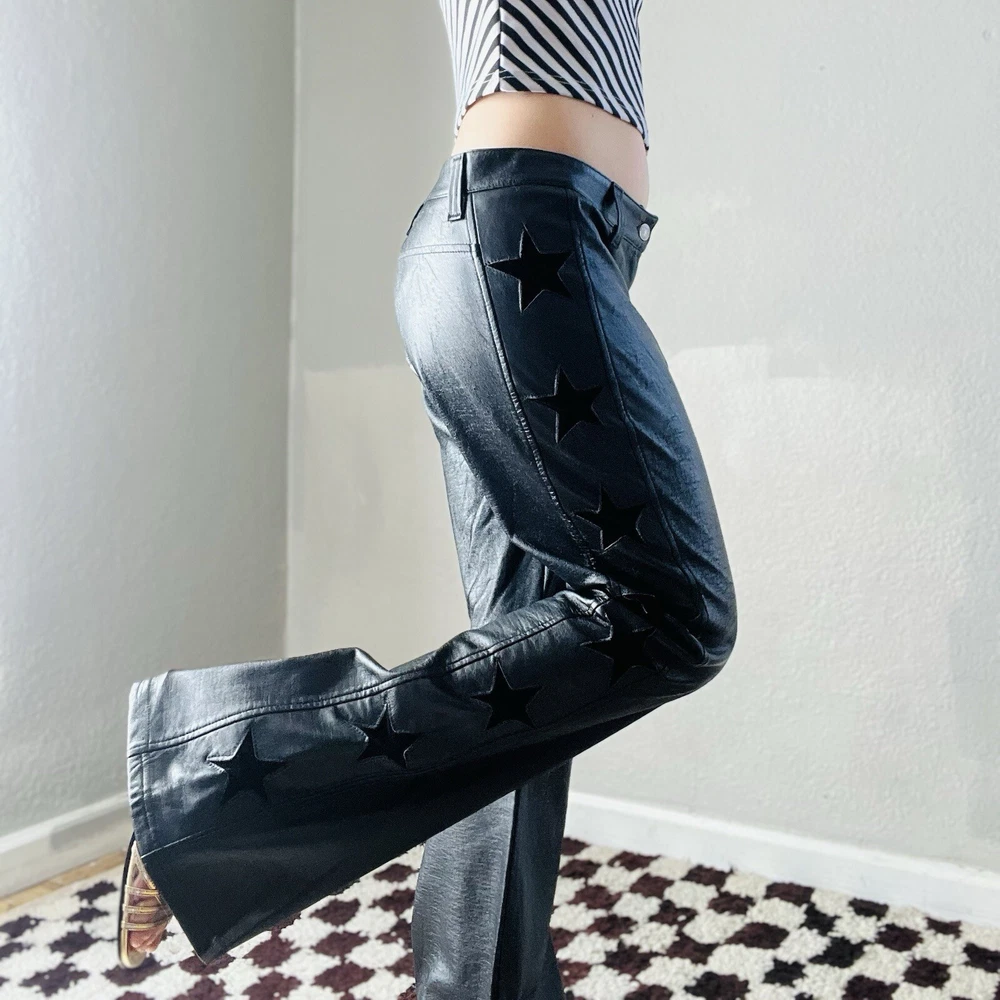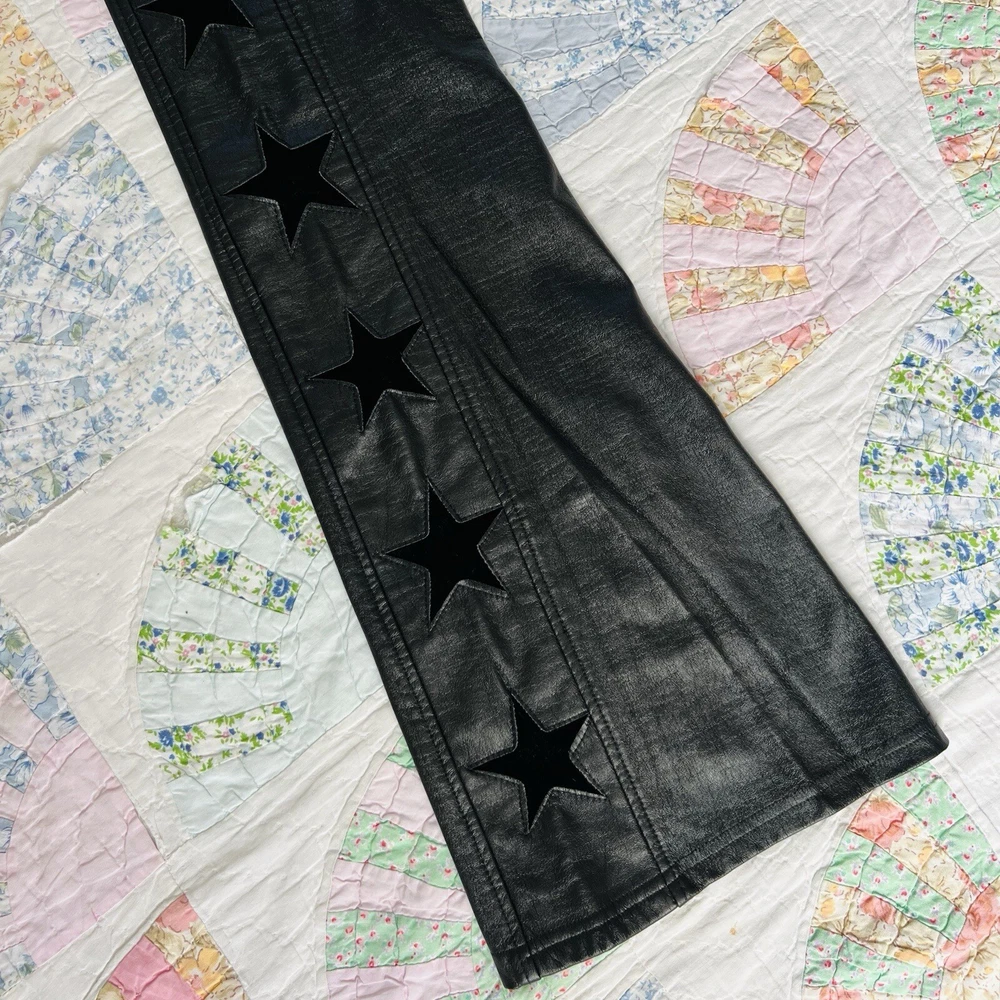 Size: M Style: Flare Size Type: Regular Brand: Lip Service Department: Women Material: Faux Leather Color: Black Type: Pants Waist Size: 33 in Vintage: Yes Theme: Stars