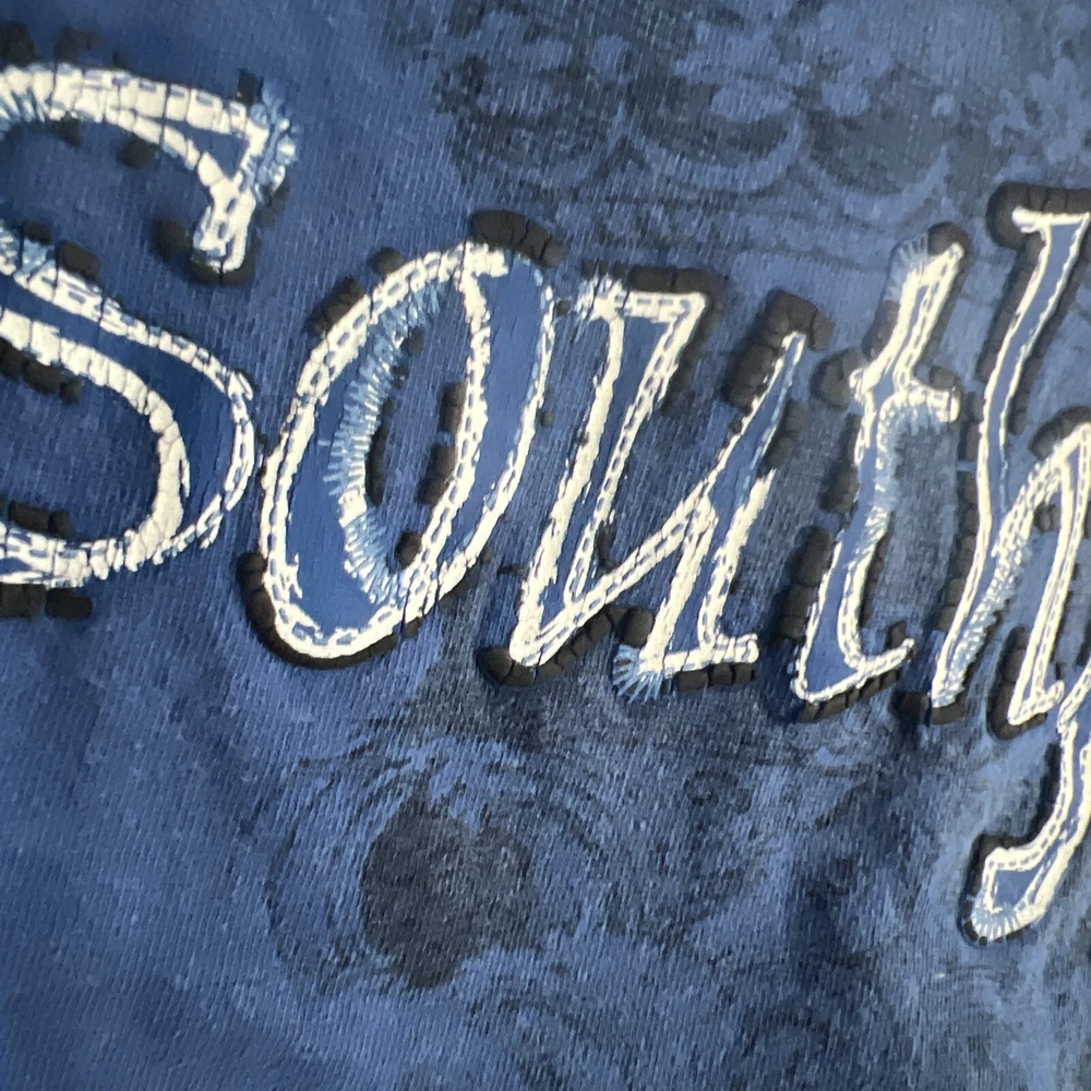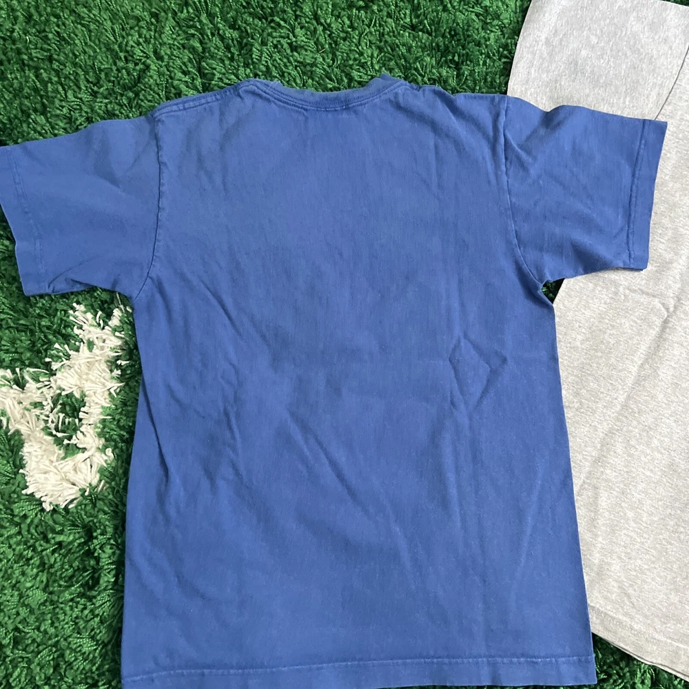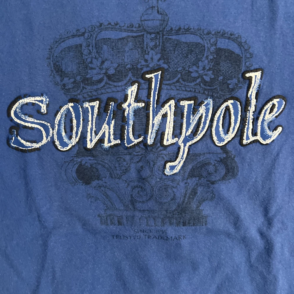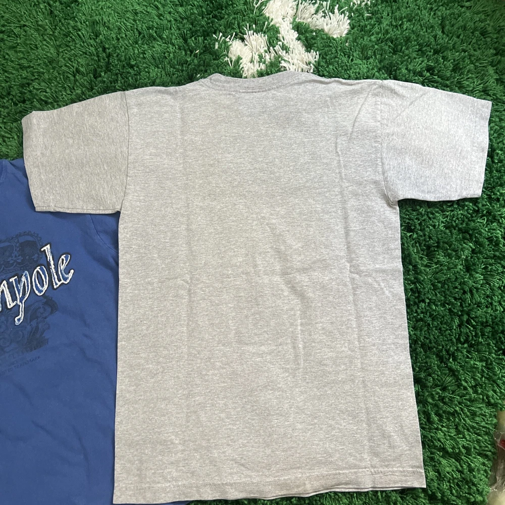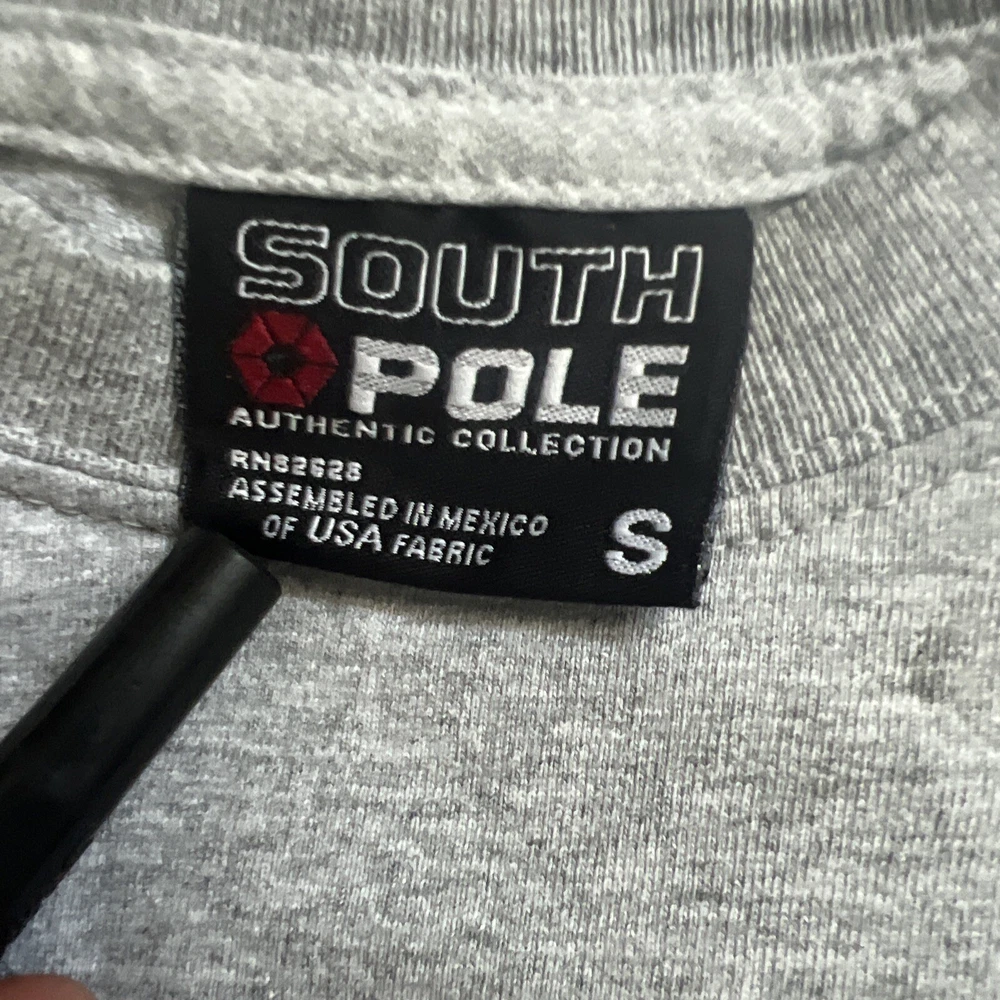 2 vintage South Pole graphic t shirts. They are in great shape and the only flaw is 2 small marks at the top of the grey shirt as seen in the photos. The measurements on the blue shirt are 16.5” pit to pit and 23” top to bottom. The measurements for the grey shirt are 17.5” pit to pit and 26” pit to pit. Please see all photos