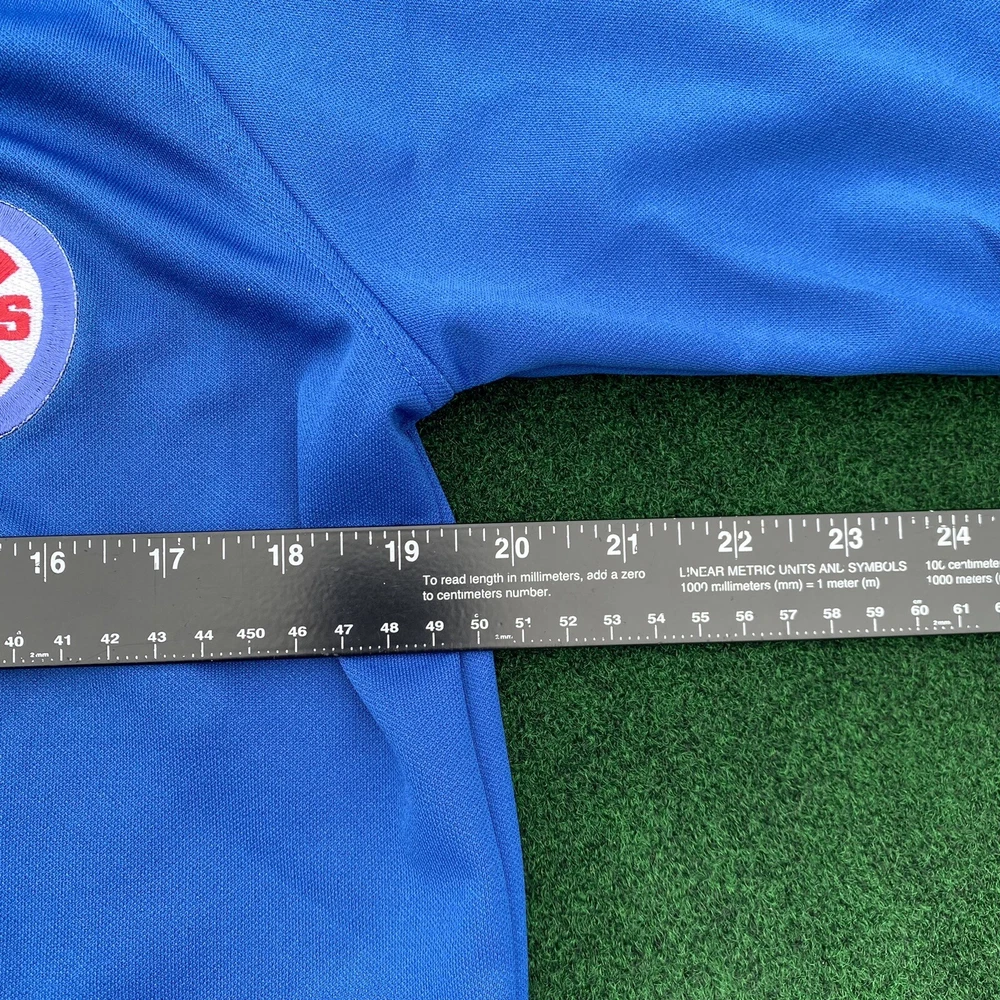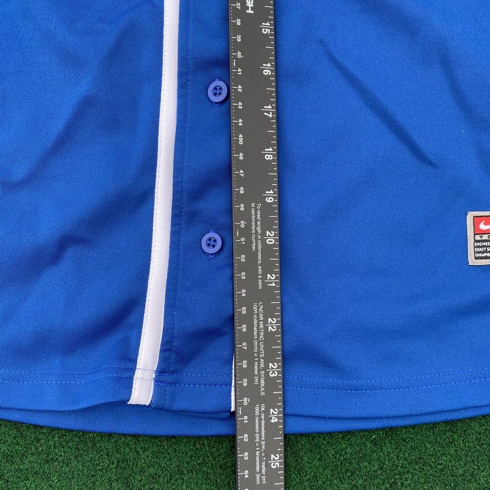 Show your support for the Chicago Cubs with this vintage Y2K Team Nike jersey. Made for boys, this size XL jersey is perfect for any young fan of the Major League Baseball team. The blue jersey features the iconic Chicago Cubs logo and is made with high-quality materials for long-lasting wear. Represent your favorite team in style with this officially licensed Nike product. Whether you're going to a game or just showing off your team spirit, this jersey is perfect for any occasion. Add it to your collection of sports memorabilia and fan apparel today.