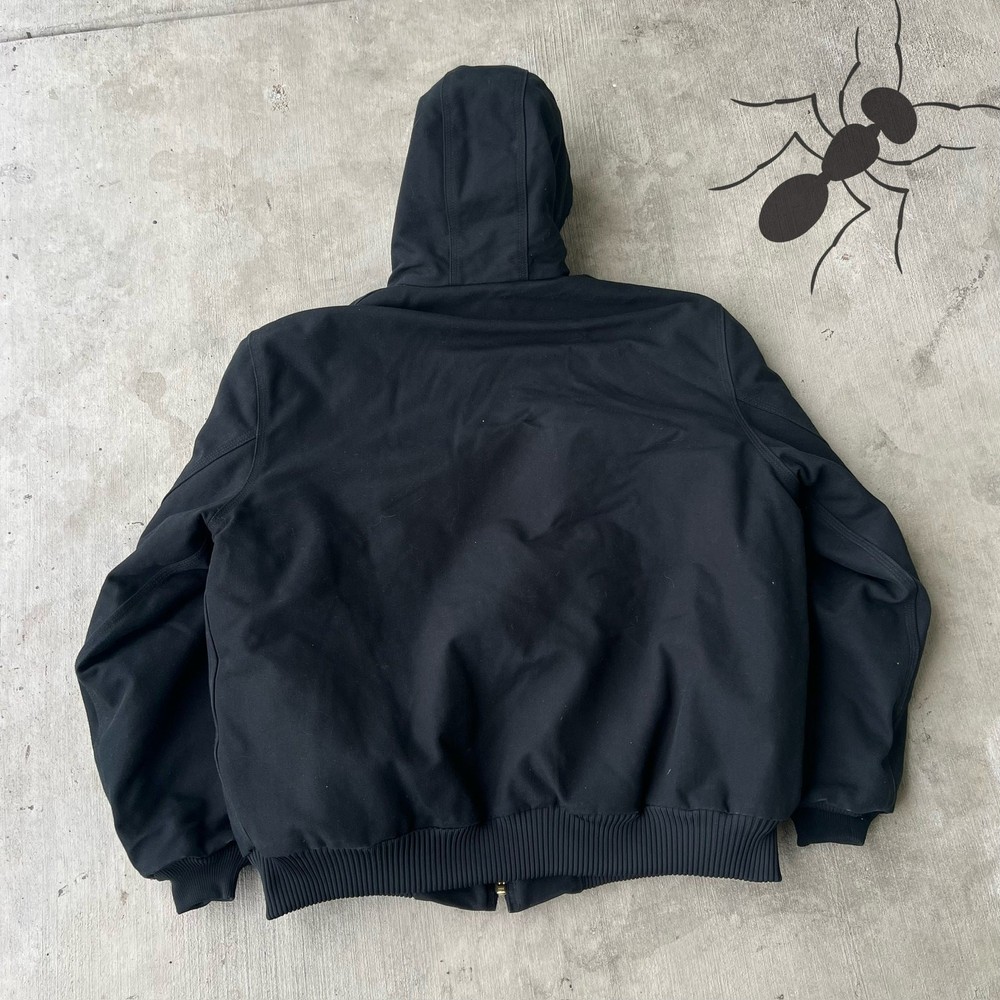 Vintage Y2K black Carhartt hooded quilted work wear jacket. Great one! Measures 29x29.5. Please check measurements before purchasing. I do my best to show any flaws in pictures. Quick shipping! Bundles encouraged! @ants_haul on Instagram.