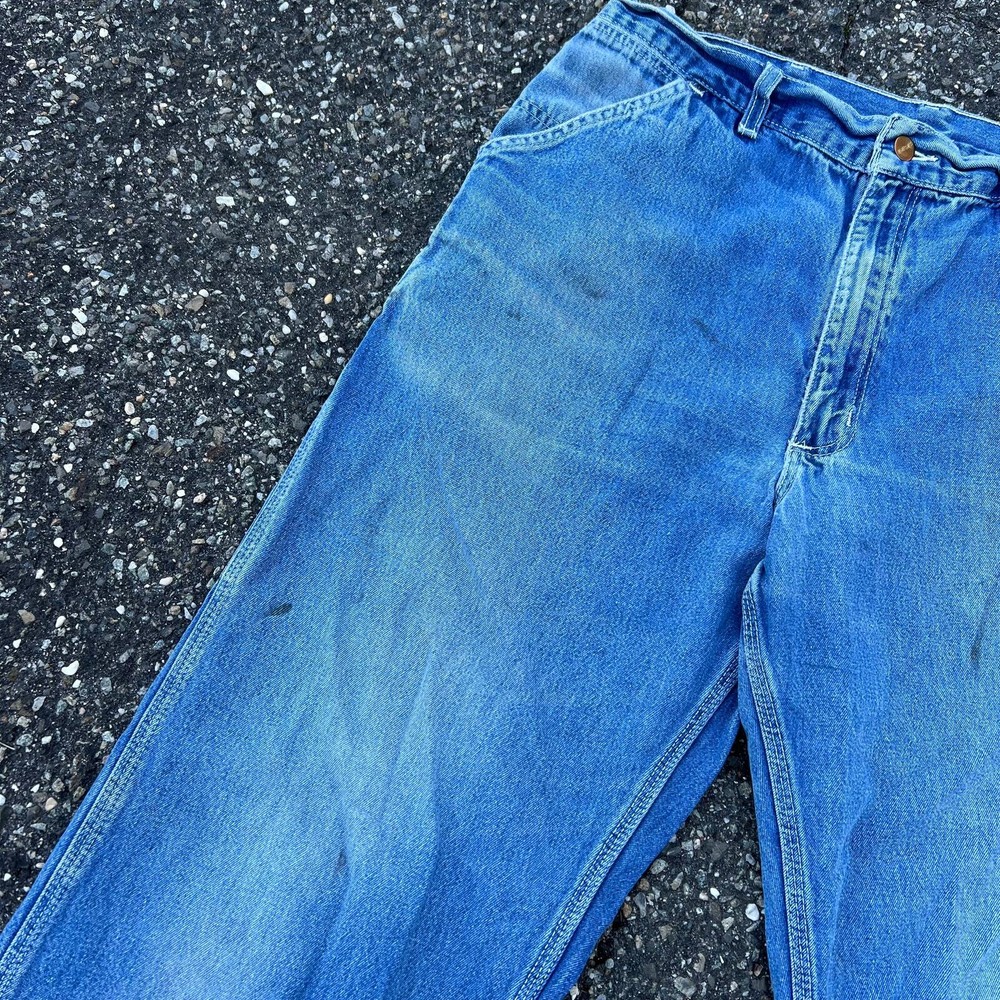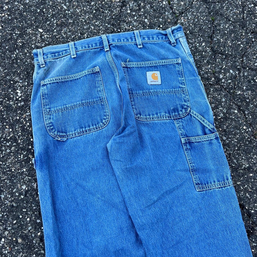Vintage Y2K blue Carhartt faded denim jeans work wear carpenter pants. Great wash on these. Measure 34x30.5 and a 9 leg opening. Please check measurements before purchasing. I do my best to show any flaws in pictures. Quick shipping! Bundles encouraged! @ants_haul on Instagram. 175!!!