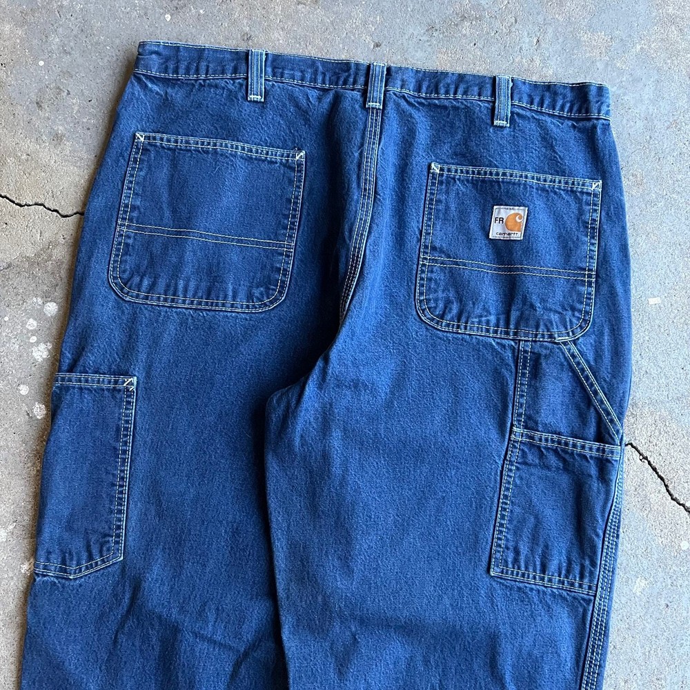 Vintage Y2K blue denim jeans Carhartt work wear carpenter pants. Great pair. Good color. Measure 38x30.5 and a 9.5 leg opening. Please check measurements before purchasing. I do my best to show any flaws in pictures. Quick shipping! Bundles encouraged! @ants_haul on Instagram. 449!!!
