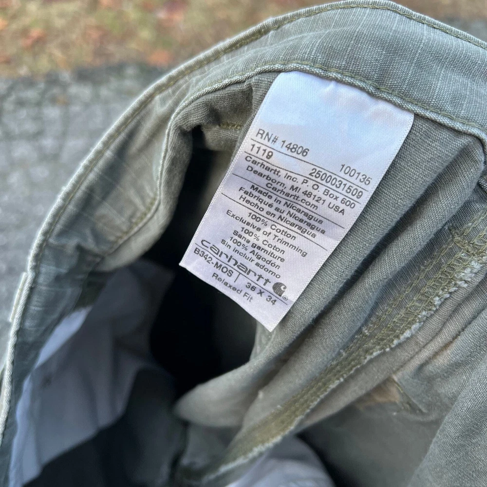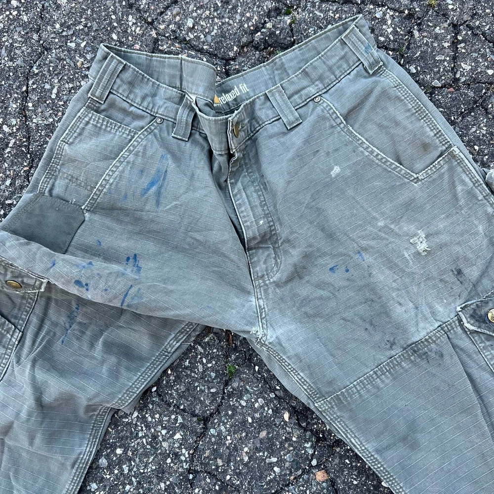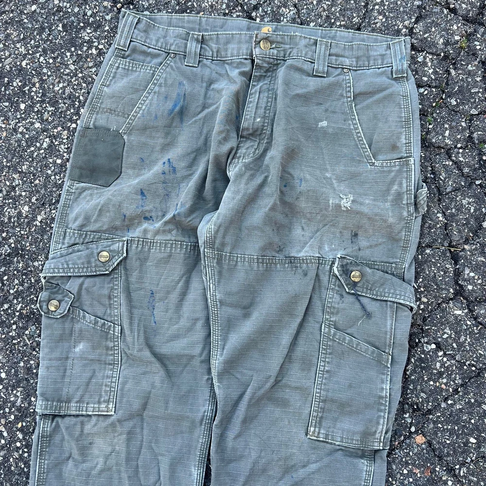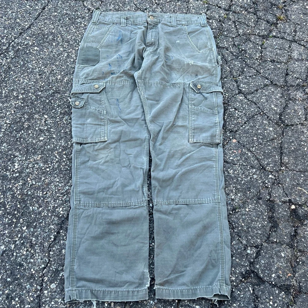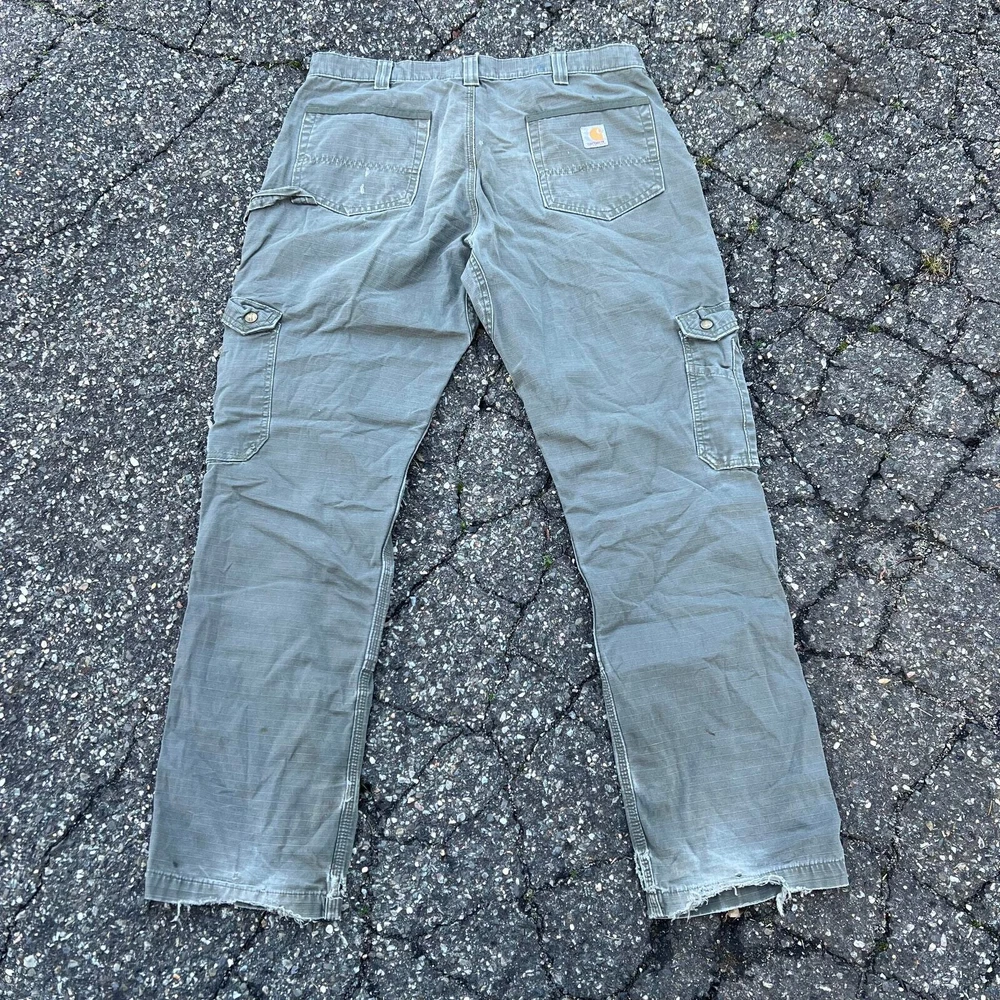 Vintage Y2K green Carhartt cargo work wear carpenter pants. Great pair. Measure 36x32.5 and a 8.5 leg opening. Please check measurements before purchasing. I do my best to show any flaws in pictures. Quick shipping! Bundles encouraged! @ants_haul on Instagram. 388!!!