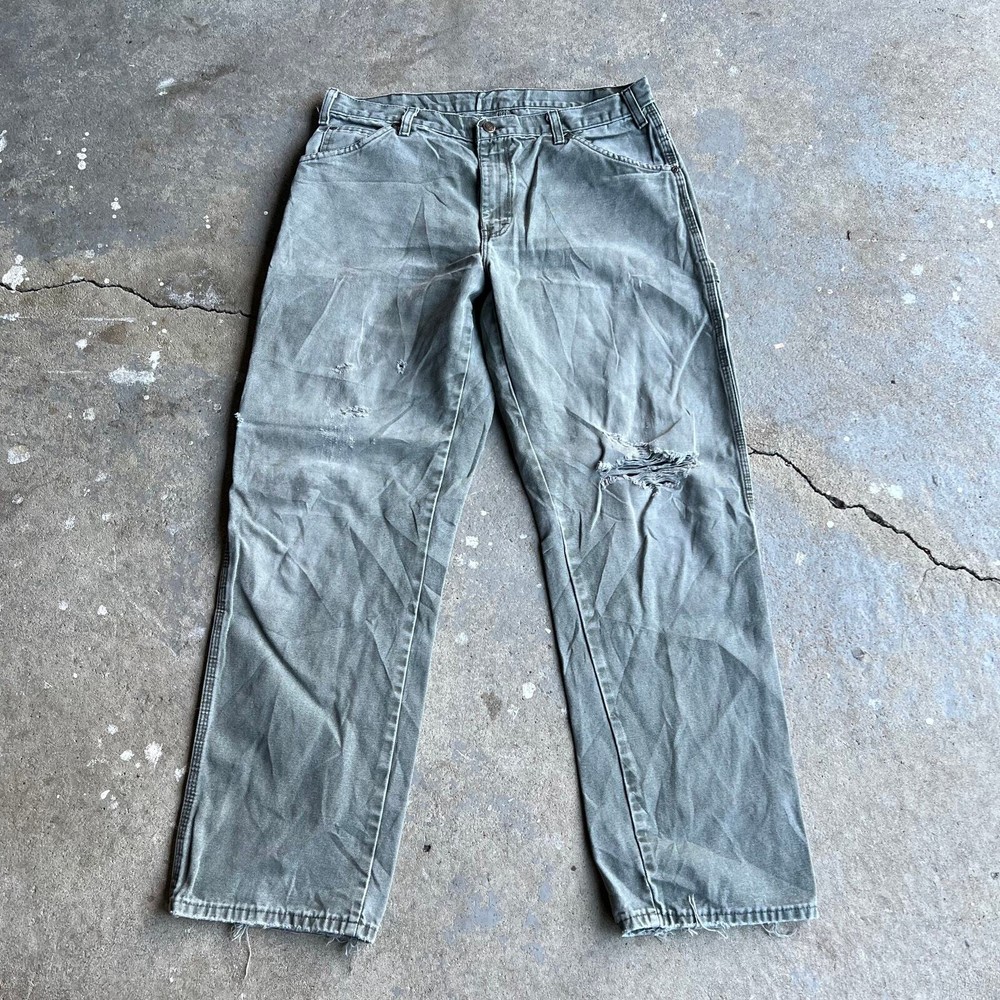 Vintage Y2K green dickies work wear carpenter pants. Really good pair! Measure 34x31.5 and a 9 leg opening. Please check measurements before purchasing. I do my best to show any flaws in pictures. Quick shipping! Bundles encouraged! @ants_haul on Instagram.