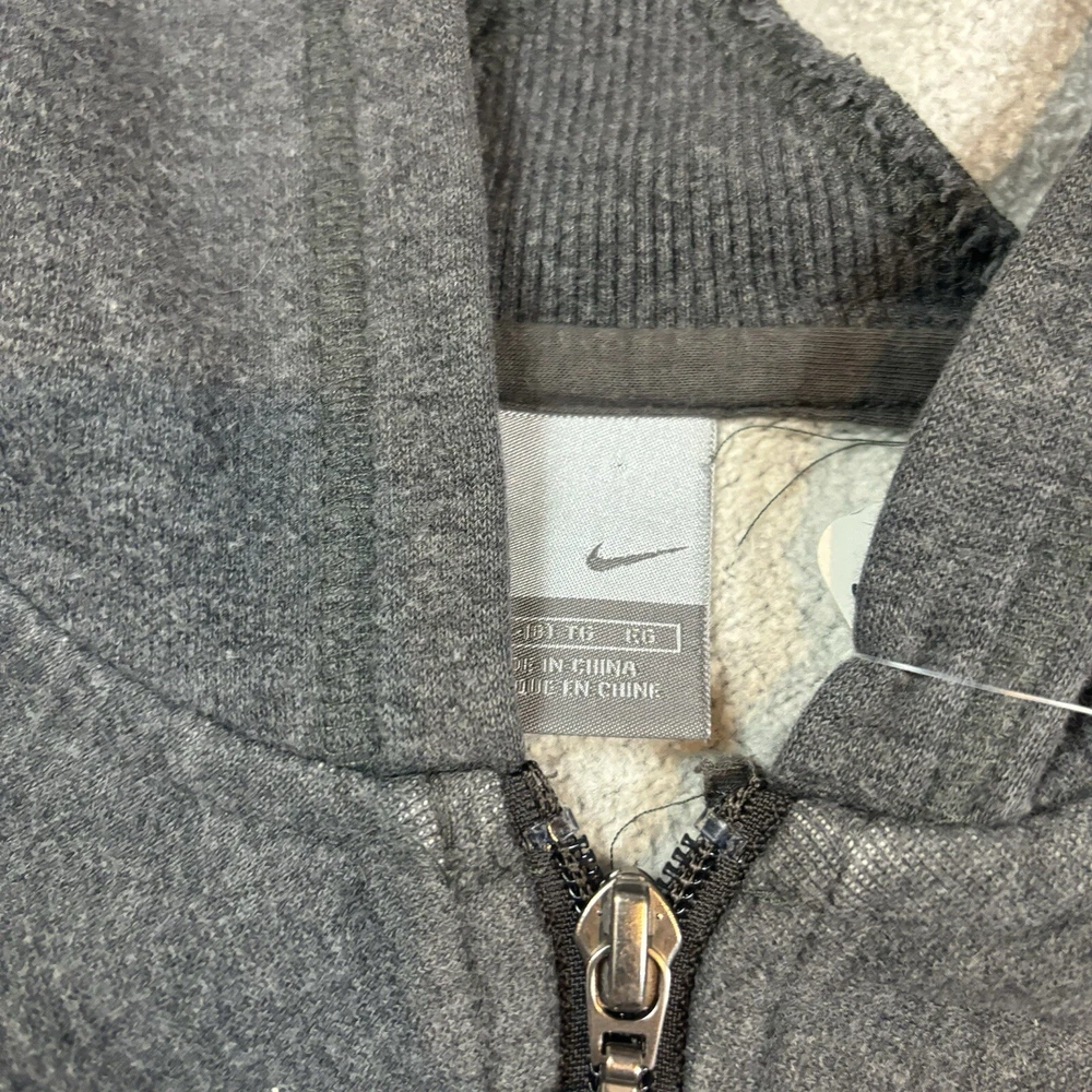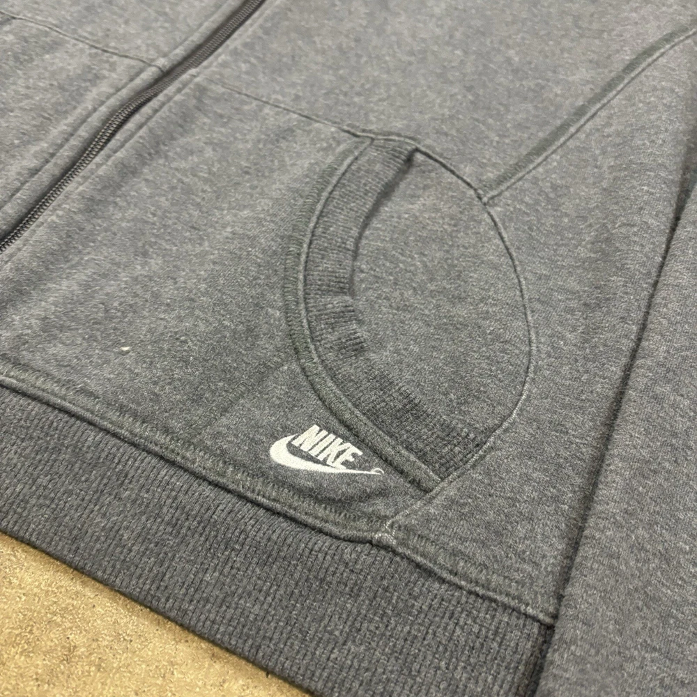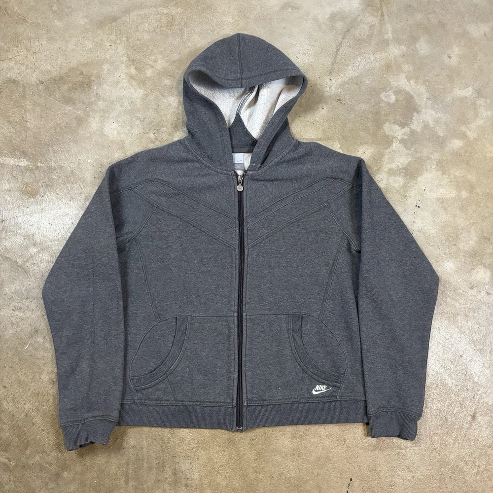 Y2K Women's Nike Embroidered Spell out Swoosh Zip Hooded Sweatshirt Size: XL Length: 24 in. Pit to Pit: 20 in. Flaws: none (Be aware these are used garments, so we may miss a stain or mark every once and a while) #y2k #nike #minimalist #athletics 0065
