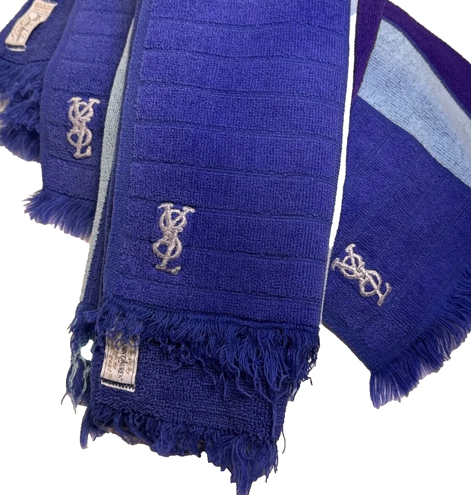 This vintage set of luxury Yves Saint Laurent bath towel face set is the perfect addition to any primary or guest bathroom. The three-piece matching set includes THREE face towels that are made of 100% Fieldcrest soft cotton with a geometric color block pattern in blue. These YSL face towels feature the iconic YSL monogram. Made in the United States. FAST SHIPPING WITH EXTRA CARE! All boxing and unboxing is video recorded for quality assurance. If product is brand new, there is a possibility that it will ship in its original packaging if it is made of heavy duty materials. This excludes items where the original box is part of the collectables value and items over $50. Whenever possible, we support the environment by prioritizing recycling. Like what you see? Visit our eBay preferred vendor store, Hampton to Hampton. Come on in and browse our vast collection of Estate Curated items. Most times items are categorically collectables, however, even daily use items or modern items are included in the estates. Here's the link: https://www.ebay.com/str/hamptontohampton