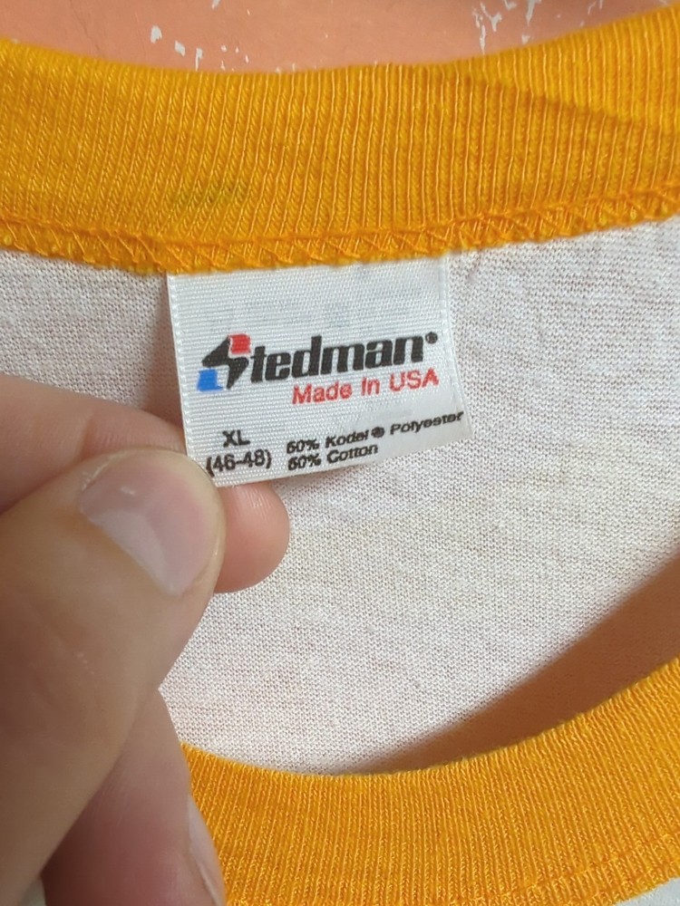 Pit to pit 23 Length 29 The Vintage YUFFIE Stedman USA T-Shirt is a sportswear/beach style tee from the 1980s, made in the United States. It features a white color and comes in a size Large/XL. This ringer t-shirt is a unique and nostalgic piece that captures the essence of young urban failure with a touch of retro flair. Perfect for those who appreciate vintage clothing and want to make a statement with their style.