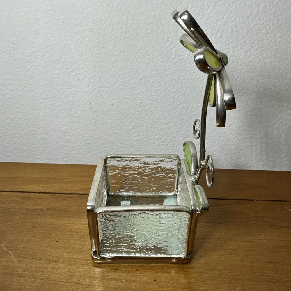 This vintage stained glass yellow flower figure trinket holder is a decorative candle holder made of glass, standing at 7 inches tall. Its retro style and flower shape make it a charming addition to various rooms in your home, such as the bedroom, living room, or bathroom. With a single unit quantity, this piece adds a touch of nature-themed elegance to your home decor.