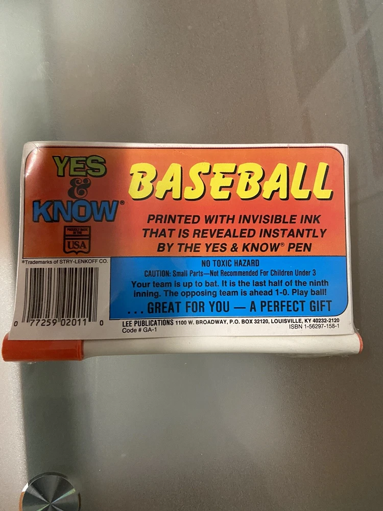 Yes & Know invisible ink game book: baseball by Lee Publications sealed in original packaging.