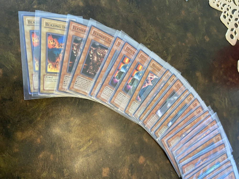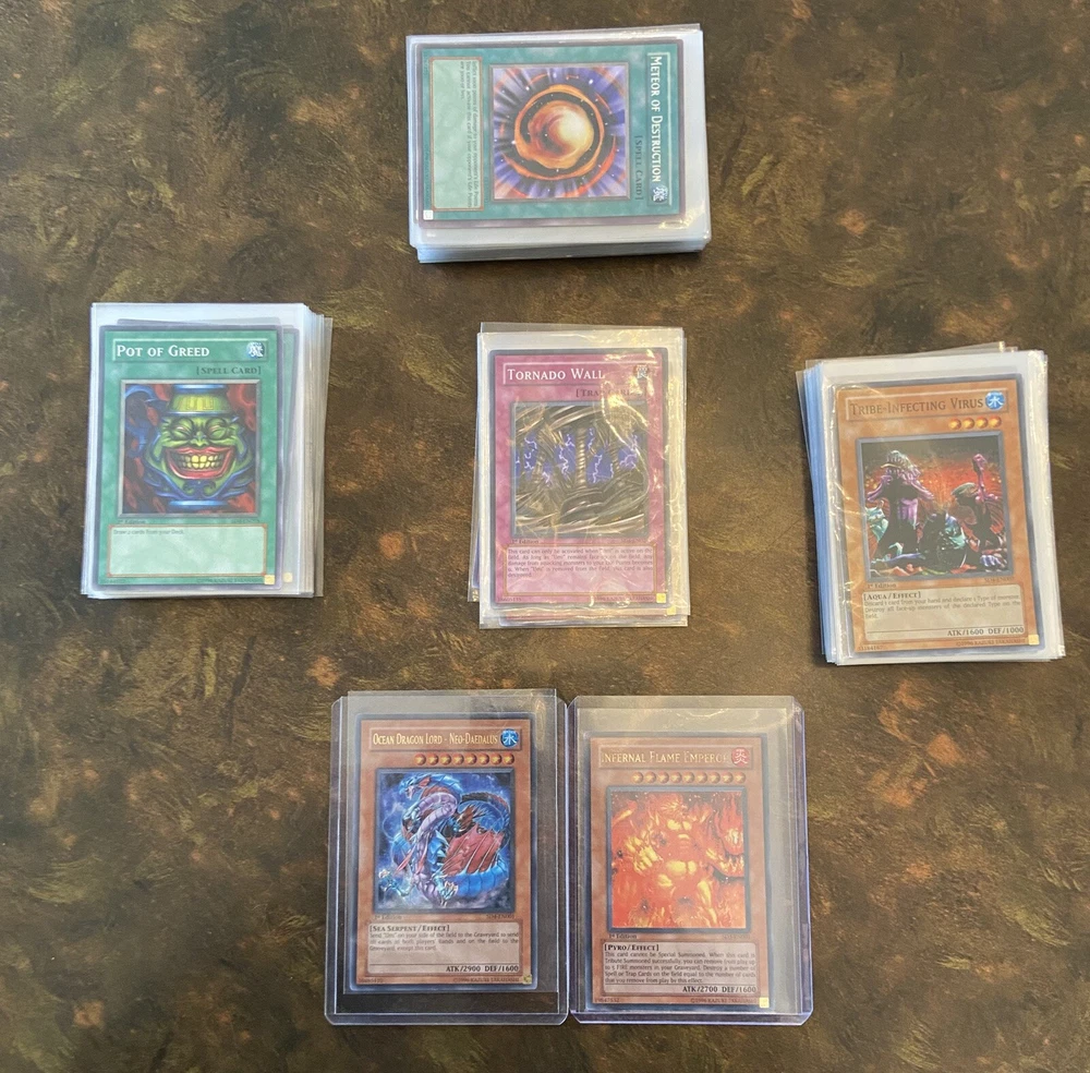 Lot of vintage Yu-Gi-Oh! Cards 107 total cards Includes 2 1st edition ultra rare cards Ocean Dragon Lord - Neo Daedalus Infernal Flame Emperor 72 1st edition cards 33 common cards Cards are in very good to near mint condition with the exception of only a few well played commons. I thought about not including them in the listing but I didn’t want to just throw them away.. Thanks for looking