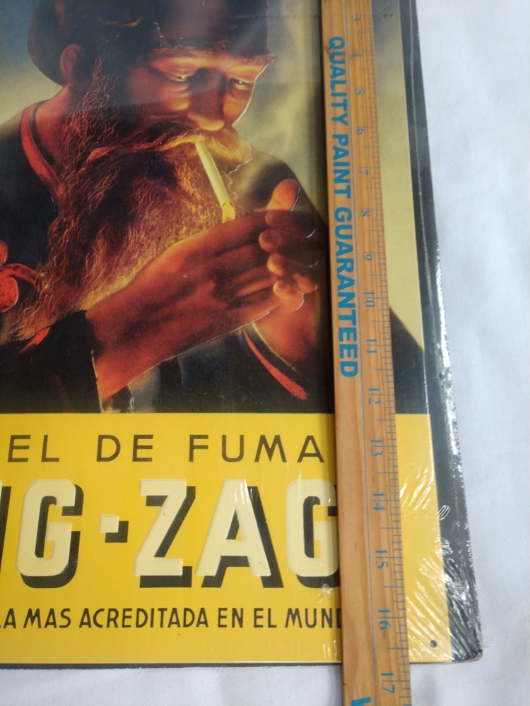 Zig Zag Cigarette Rolling Papers Tobacco Gas Oil 60s 70s And Embossed Metal Sign. In original, unopened packaging as shown. Sign is 16 3/4" x 11 3/4". Perfect for a man cave, garage, or home decor.