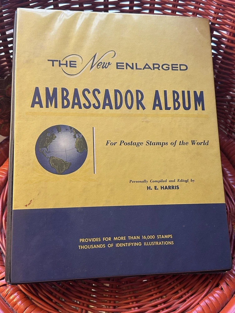 Vintage ambassador album for stamps of the world lot of rare stamps. Shipped with USPS Ground Advantage.