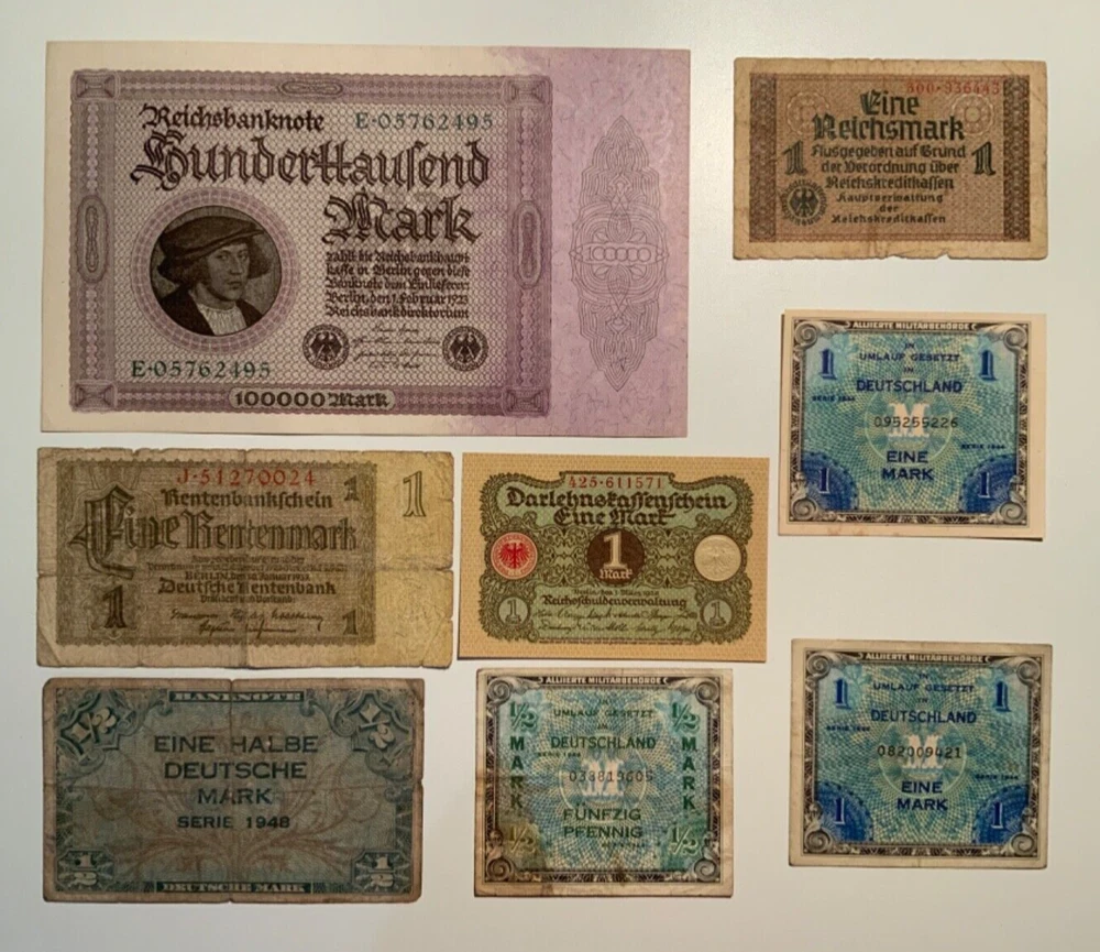 Vintage Bank Note Lot from Germany. Please reference picture and evaluate/grade by your self. If you have any questions ask before biding IMPORTANT: We strive to ensure the description of each item is as accurate as possible. But we are humans, and we make mistakes. It is the responsibility of the buyer to ensure the item being purchased is to their satisfaction. If an item is purchased and then a mistake is identified on the description of the item, the buyer has multiple options. 1) If the item has not been shipped, the buyer can cancel the order for a full refund. 2) If the item has already shipped, the buyer can return the item (free to the buyer) and a full refund will be issued after the item is received and inspected. 3) The buyer can decide to keep the item, no further action will be required in this case.