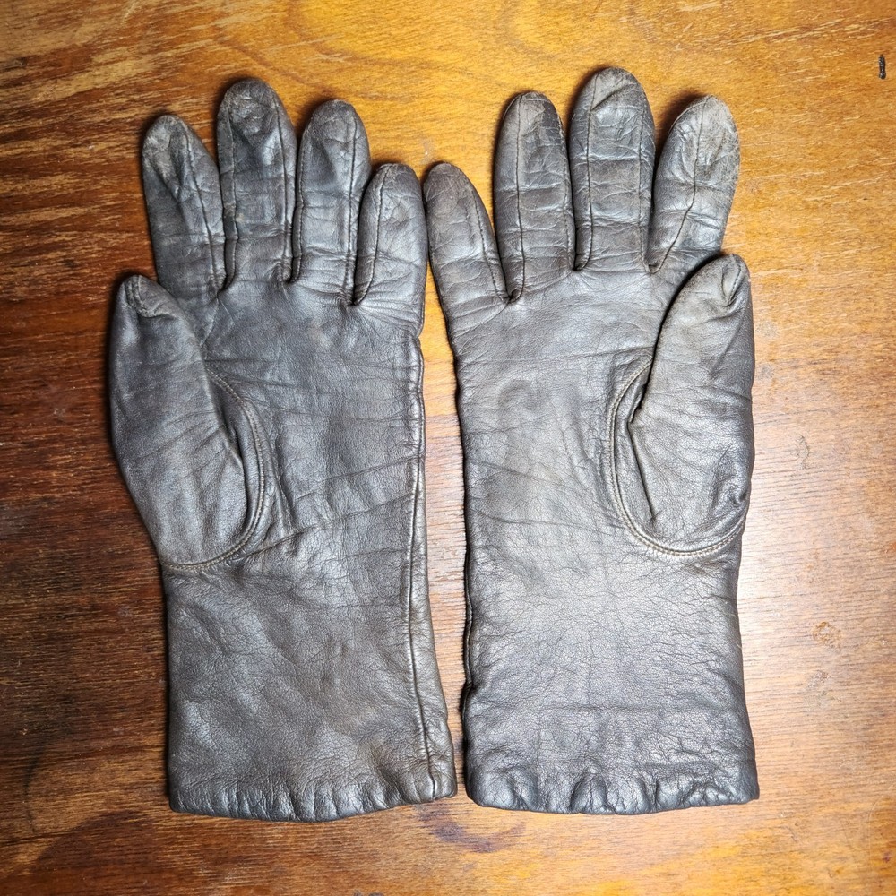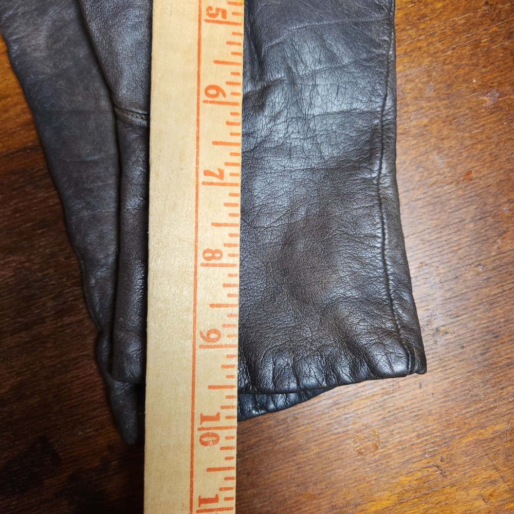 Women's vintage black cashmere gloves with a classic, elegant design. Soft and luxurious feel with a fine knit texture, perfect for cold weather or a timeless accessory look. Likely mid-century, with slight stretch for comfort and fit.