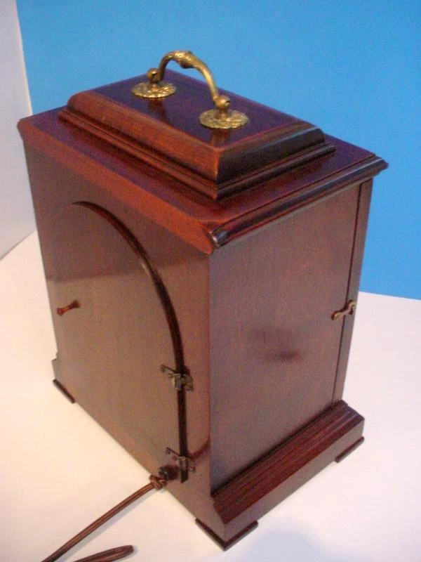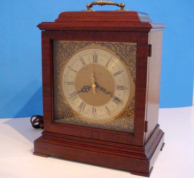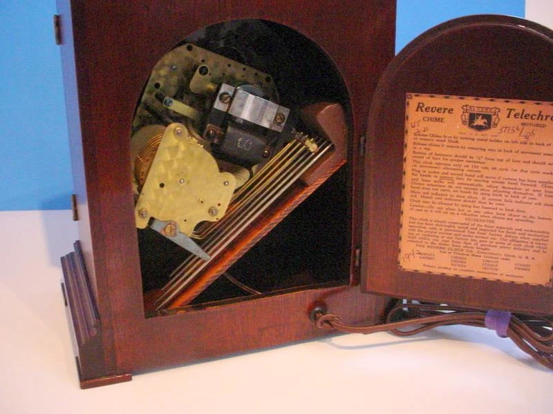 Watchentime Restoring vintage time to look new again. eBay Since 1999 Rare Vintage circa 1942 REVERE R-443 Telechron Motored Westminster Chime Solid Mahogany English type Mantel Clock Up for your consideration is a rare low production 1942 REVERE Serial # 375611 Telechron motored with Westminster Chimes. Substantial in size and possesses deep toned Westchester Chimes. The dial is antique brass with satin silver finish numeral circle. Corner ornaments of antique brass and solid brass handle on top. Hand constructed of heavy solid mahogany with hinged door at front and also at back. This clock has been completely dissembled, rebuilt rotor, rewired and restored to its original condition. Dimension: High 13-1/2" x Wide 10-3/8" x Deep 7" I GUARANTEE its authenticity or your money back. Feel free to check my feedback and bid with confidence. If you have any questions, please ask before placing your bid. Good luck and have fun. .................SEE YOU AT THE AUCTION...................... PAYMENT DETAILS Payment is due at auction end. Payment Method eBay USA Shipping: Shipping 2-3 business days thru USPS insured. All Sales Final....................................... "WERE ALWAYS WATCHENTINE" Vintage c.1942 REVERE R-443 Solid Mahogany Westminster Chime Bracket Clock Vintage c.1942 REVERE R-443 Solid Mahogany Westminster Chime Bracket Clock Click images to enlarge Description Watchentime Restoring vintage time to look new again eBay Since 1999 Rare Vintage circa 1942 REVERE R-443 Telechron Motored Westminster Chime Solid Mahogany English type Mantel Clock Up for your consideration is a rare low production 1942 REVERE Serial # 375611 Telechron motored with Westminster Chimes. Substantial in size and possesses deep toned Westchester Chimes. The dial is antique brass with satin silver finish Roman numeral circle, corner ornaments of antique brass and solid brass handle on top. Hand constructed of heavy solid mahogany with hinged door at front and also at back. This clock has been completely dissembled, rebuilt rotor, rewired and restored to its original condition. Dimension: High 13-1/2" x Wide 10-3/8" x Deep 7" I GUARANTEE its authenticity or your money back. Feel free to check my feedback and bid with confidence. If you have any questions, please ask before placing your bid. Good luck and have fun. .................SEE YOU AT THE AUCTION...................... PAYMENT DETAILS Payment is due at auction end. Payment Method eBay USA Shipping: Shipping 2-3 business days thru USPS insured. All Sales Final....................................... "WERE ALWAYS WATCHENTINE" Images sell! Get Supersized Images & Free Image Hosting 300+ Listing Templates! Auctiva gets you noticed! The complete eBay Selling Solution. Track Page Views With Auctiva's Counter
