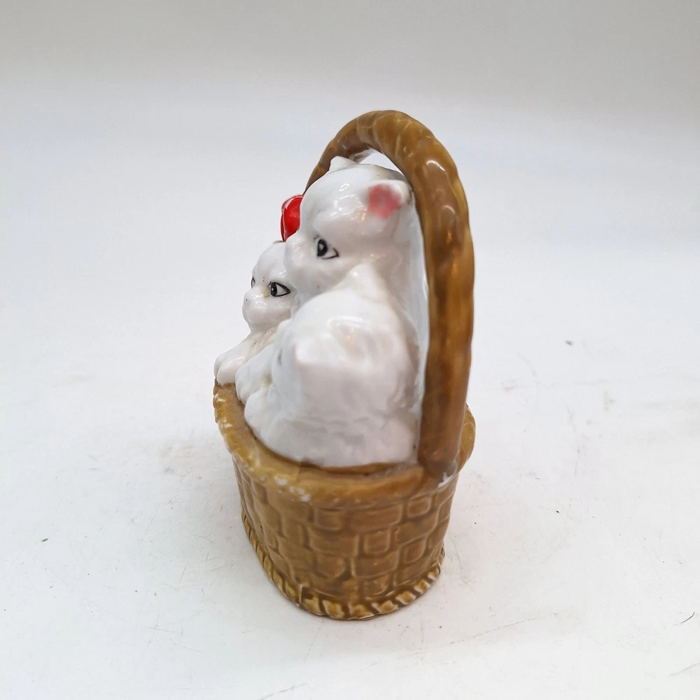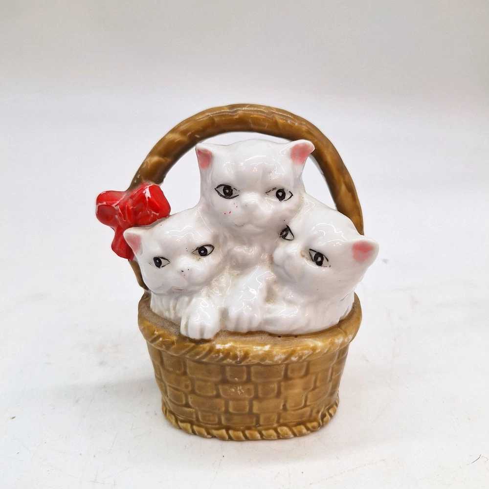 Adorable vintage ceramic white Persian kittens nestled in a basket. Country cottage decor style. Made in Japan, Perfect for vintage decor and cat enthusiasts. Features: • Japan Condition: Pre-Owned Good No chips or cracks, minor surface wear Thank you for shopping with Gardenspire. All items are carefully packaged for maximum protection during shipping. We ship on Mondays, Wednesdays and Fridays. We had select all of our items from a variety of sources. While our home is smoke free, we cannot guarantee that these items originated from a smoke free environment. We do our best to inspect each item and to accurately describe any and all blemishes. However, we are human and we sometimes make mistakes. Please do reach out to us if you are unsatisfied with your purchase so we can work with you to make it right. We offer 30 day refunds. Please check out our store for more great items.