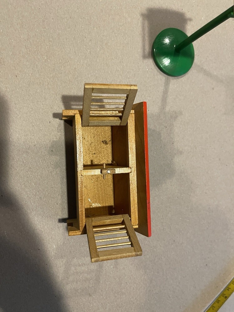 This vintage dollhouse miniature critter animal cage is a charming addition to any dollhouse collection. The bird feeder is made of wood and features a multicolor design, perfect for adding a whimsical touch to any room. This 1:12 scale feeder is an original piece that brings a touch of nostalgia to the dollhouse setting. Perfect for bird lovers or collectors of vintage dollhouse miniatures.