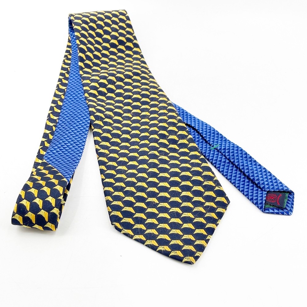 HomeVintage geometric print TOMMY HILFIGER silk tie for men in blue and gold