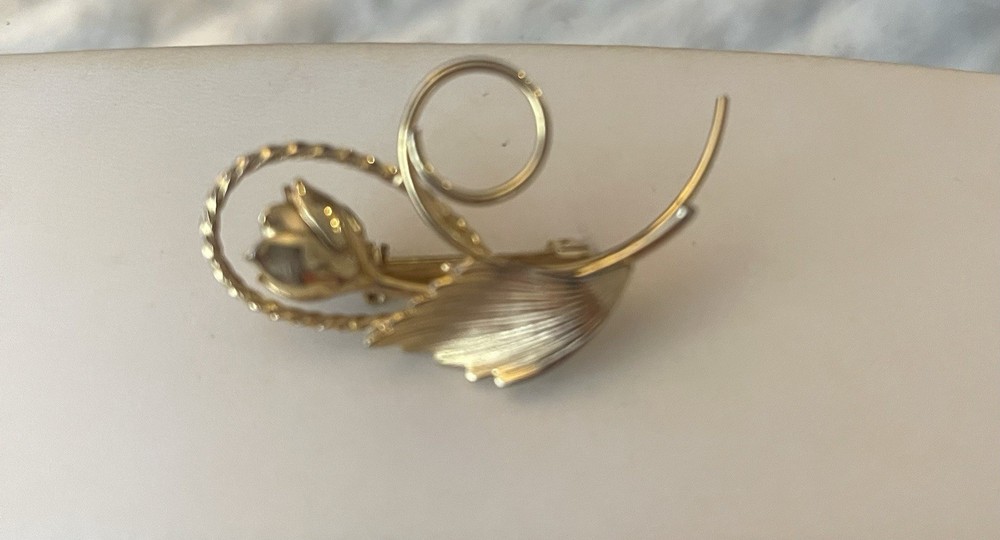 Vintage gold-tone rose brooch pin 2 inch stunning floral accessory