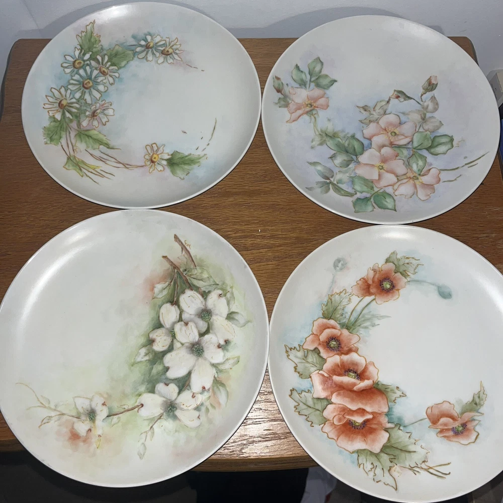 Vintage hand painted porcelain 8” salad Dining Ware plates. Set Of 4