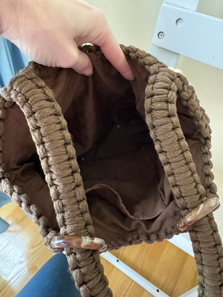 This vintage hand crafted crochet tote is a one-of-a-kind piece that has never been carried. It features a multicolor exterior made from a cotton blend material, with intricate crochet accents adding a unique and handmade touch. The medium-sized tote is designed for women and offers a stylish and bohemian look that is perfect for carrying everyday essentials with a touch of vintage charm. The lack of a specific brand adds to its individuality and makes it a standout accessory for those who appreciate artisanal craftsmanship.