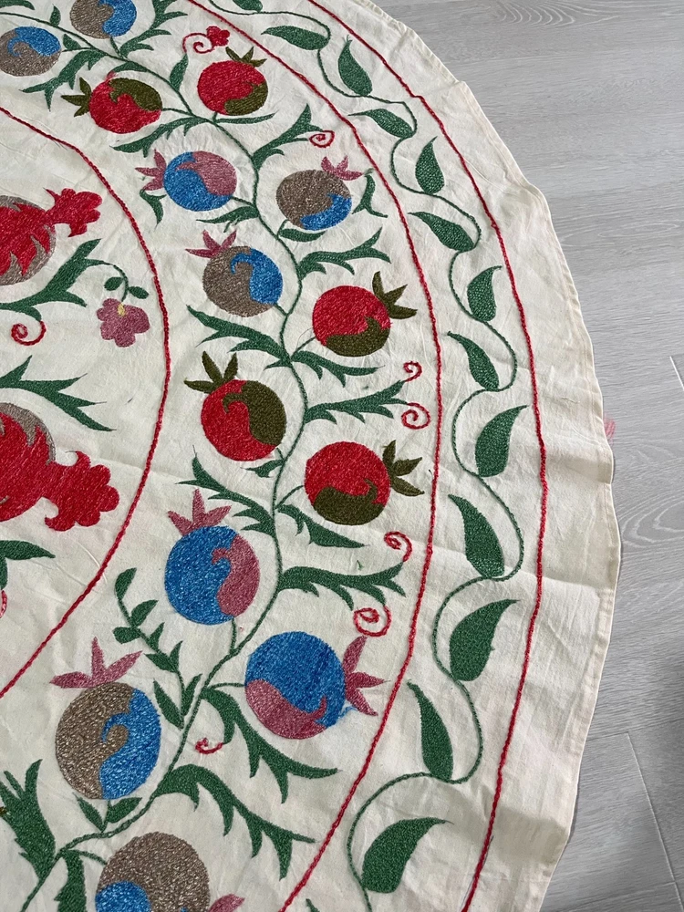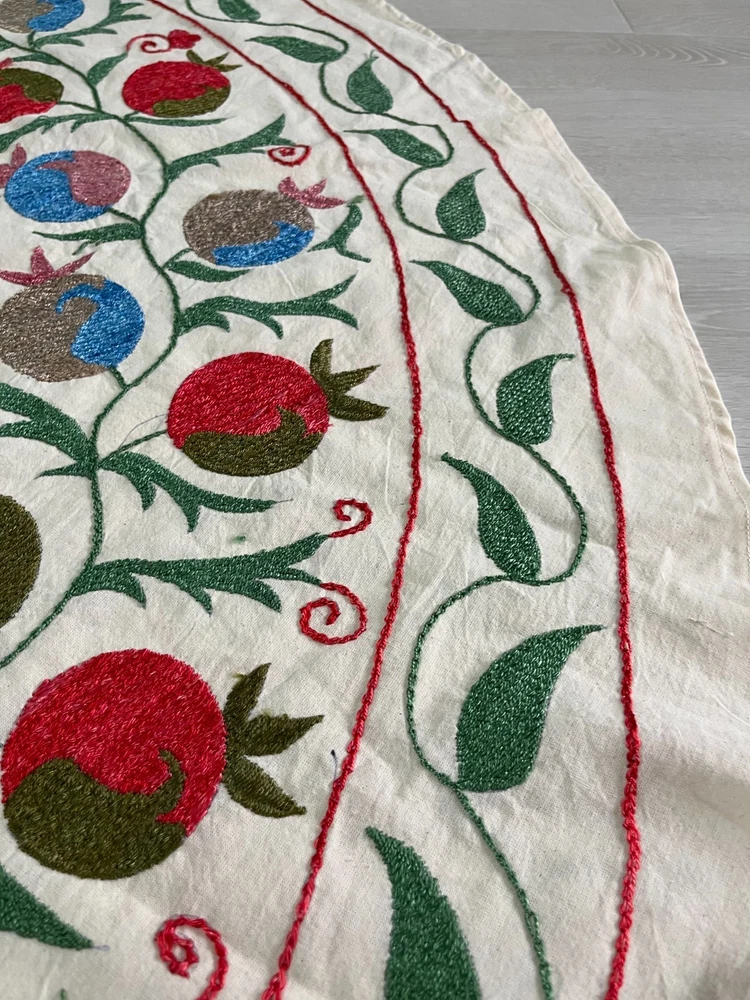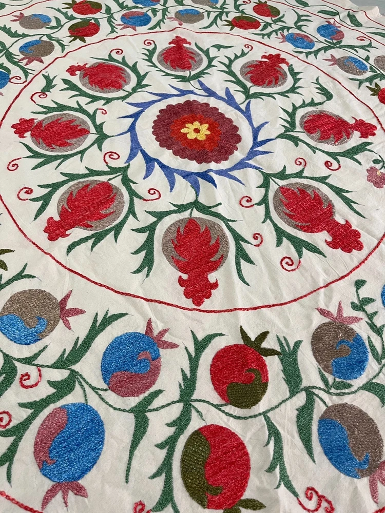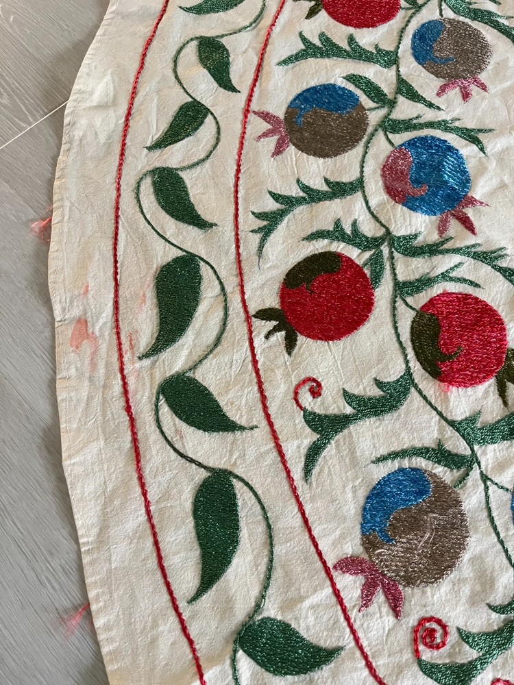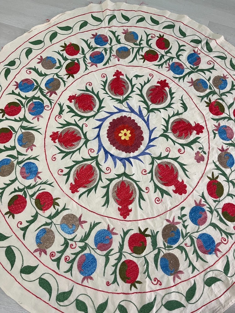 Created with Eselt - Mobile Optimized Templates for eBay Sellers Welcome to Samarkand Send us a message Created with Eselt - Mobile Optimized Templates for eBay Sellers Our Store Seller Profile Feedback About us Contact Created with Eselt - Mobile Optimized Templates for eBay Sellers Handmade Uzbek Suzani Wall Hanging Red Blue Floral Embroidery Art Boho Decor Handmade Uzbek Suzani Wall Hanging – Red Blue Floral Embroidery Art | Boho Home Decor Hand Embroidered Uzbek Suzani – “Pomegranate Garden” by Siyab Bazar ROUND 4.92 ft (150 cm) Boho Coverlet | Wall Art | Tapestry | Textile Decor A suzani is a traditional Central Asian hand-embroidered panel, and creating one from scratch is a lengthy, completely manual process. Below is the classic technique, as our artisans prepare it. Preparing the base (fabric) Traditionally used materials: • cotton • linen • silk (in the old days, homespun cloth) What to do: • the fabric is washed and dried to allow it to shrink beforehand • ironed • sometimes several pieces are sewn together into one large piece (suzani are rarely made from a single piece) Applying the pattern This is one of the most important steps. Methods: • Draw the pattern by hand (chalk, charcoal, pencil) • Transfer from a stencil • In the old days, the pattern was often stored "in the mind" of the craftswoman The patterns are not random: • Sun — life, energy • Flowers — beauty, fertility • Branches — procreation Each region (Bukhara, Samarkand, Shakhrisabz, Tashkent) has its own style. Thread selection Traditionally: • Silk threads (the most valuable) • Cotton • Sometimes wool Colors are selected by hand; in the past, they were dyed with natural dyes: • Garnet • Indigo • Onion peel • Madder root Hand embroidery The longest stage. Basic techniques: • Basma - a thick satin stitch (the most popular) • Yurma - a chain stitch • Ilma - a filling stitch How to embroider: • The fabric is stretched over a frame • The embroidery process takes months, sometimes 6-12 months • Often several women work on a single suzani In the old days, suzani were prepared as part of a bride's dowry. Assembly and finishing After completing the embroidery: • check for symmetry • carefully secure the threads • hand wash • dry in the shade • smooth without applying too much pressure Sometimes add: • fringe • lining • decorative edging The finished suzani completely handmade unique pattern (no other like it exists) can be used as: • wall hanging • bedspread • wedding or family dowry 💡 Interesting fact A true suzani is never perfectly even – this is the hallmark of handcrafted work and the “living energy” of the piece. Immerse yourself in the timeless beauty of Samarkand craftsmanship with this hand-embroidered Uzbek Suzani, part of Siyab Bazar’s signature “Pomegranate Garden” collection — where every stitch blooms with life, color, and meaning. This exquisite Suzani showcases vibrant red pomegranate patterns framed by bold floral motifs — each symbolizing love, abundance, and prosperity. Hand-embroidered by skilled women artisans in Samarkand, it carries the warmth of their heritage and the rhythm of the legendary Siyab Bazaar, where tradition and artistry meet. Features: Place of origin: Samarkand, Uzbekistan Material 100% natural made of Suzani cotton and silk (ikat and adras) Size: 4.92 ft approx. (150 cm) Traditional Central Asian Suzani pomegranate motif designs in silk thread, embroidered by hand. Dry clean only! Do not bleach! 100% Hand-embroidered in Samarkand, Uzbekistan Silk and cotton threads on a natural cotton base Elegant red pomegranate & floral motifs – traditional symbols of fertility and joy Ideal as wall art, bed cover, or boho home accent Unique Siyab Bazar design – no replicas, each piece is one of a kind, no two are ever the same Soft, detailed, and filled with rich cultural energy Lightweight, soft, and richly textured ✨ A Piece with a Story: This Suzani tells a tale of sunlight and silk, of red pomegranates bursting with life and fortune. The intricate needlework embodies centuries of Central Asian tradition, while its bold palette brings warmth and elegance to any interior — from bohemian lofts to refined modern homes. Hang it as a tapestry, drape it as a coverlet, or display it as a textile artwork — wherever it rests, it will radiate the soul of Samarkand and the unmistakable spirit of Siyab Bazar. Approximate Size: 4.92 ft (150 cm) Material: Cotton base with silk/cotton embroidery Origin: Handcrafted in Samarkand, Uzbekistan Condition: New – handmade; natural variations emphasize its authenticity Siyab Bazar Heritage Collection: At Siyab Bazar, we celebrate the living art of Uzbekistan. Every Suzani we curate is not just decor — it’s a story woven by hand, a bridge between the past and the present. Let the red pomegranates of Samarkand bloom in your home — symbols of abundance, unity, and timeless beauty. 🕊 SiyabBazar Promise: At SiyabBazar, each Suzani is chosen for its spirit, artistry, and heritage. We partner directly with Uzbek craftswomen to preserve their ancestral embroidery traditions and share their beauty with the world. Bring home a piece of the Samarkand sky — a handmade treasure woven with peace, history, and heart. God bless and warm regards, - Siyab Bazar Team Thank you for viewing our listing! Created with Eselt - Mobile Optimized Templates for eBay Sellers Payment IMMEDIATE PAYMENT REQUIRED. We accept all major payment methods such as PaypPal, Payoneer, Google Pay, VISA, Mastercard, AmEx and Discovery. Shipping All items are shipped from Tashkent, Uzbekistan. EXPEDITED INTERNATIONAL SHIPPING via Courier (FedEx or DHL) Delivery time: 10 business days Products for which you requested PERSONALIZATION we need 5 additional days for production. Delivery times vary depending on local/ international postal services and weather conditions . Processing time: 