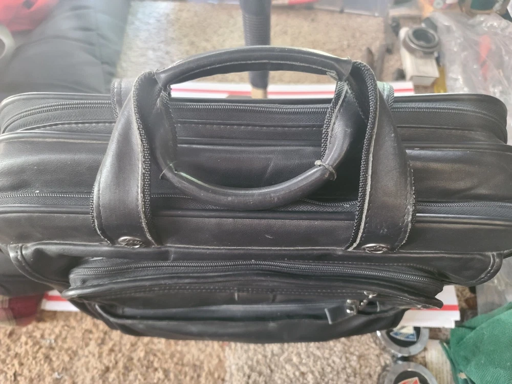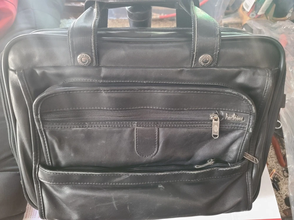 Here is a real leather Hartmann laptop tablet bag I purchased in 1998 for 500.00. Can you imagine how much it would cost today? I just don't have much use for it anymore. The one shoulder strap ring is ripped out from to much weight but the carry handle is still strong. Has 2 seperate compartments divided, plus a couple pockets on front. Please let me know if you have any questions or concerns. ship will have to be 25 due to size. ebay will likely add tax.