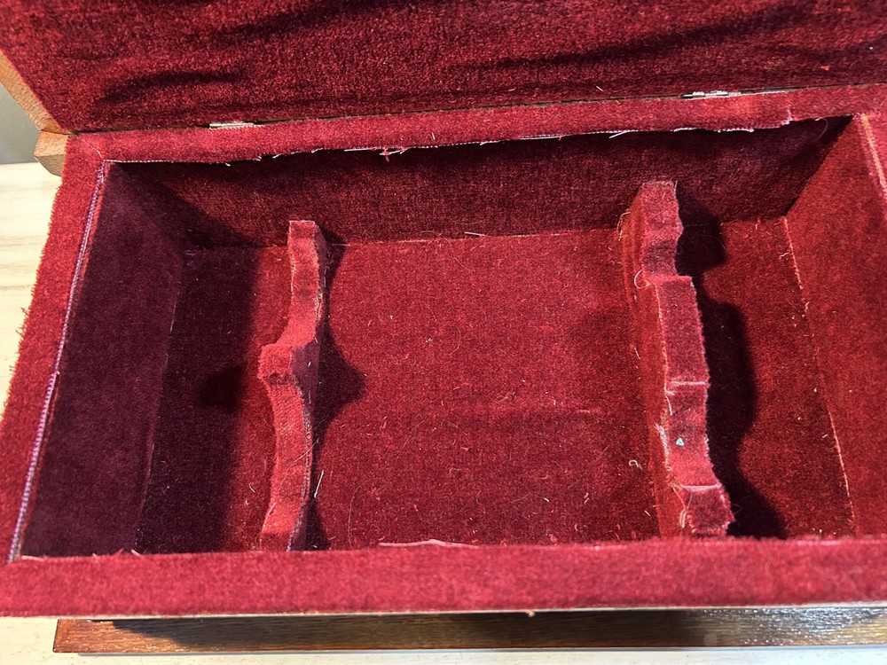 Moroccan Thuya wood jewelry box with mother of pearl and walnut wood inlay