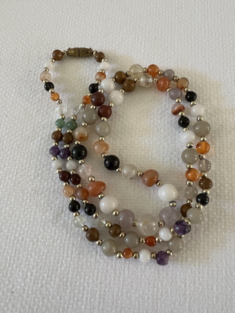 Vintage Mixed quartz agate stone semi precious long beaded necklace. El estado es Pre-owned. Se envió con USPS Ground Advantage.
