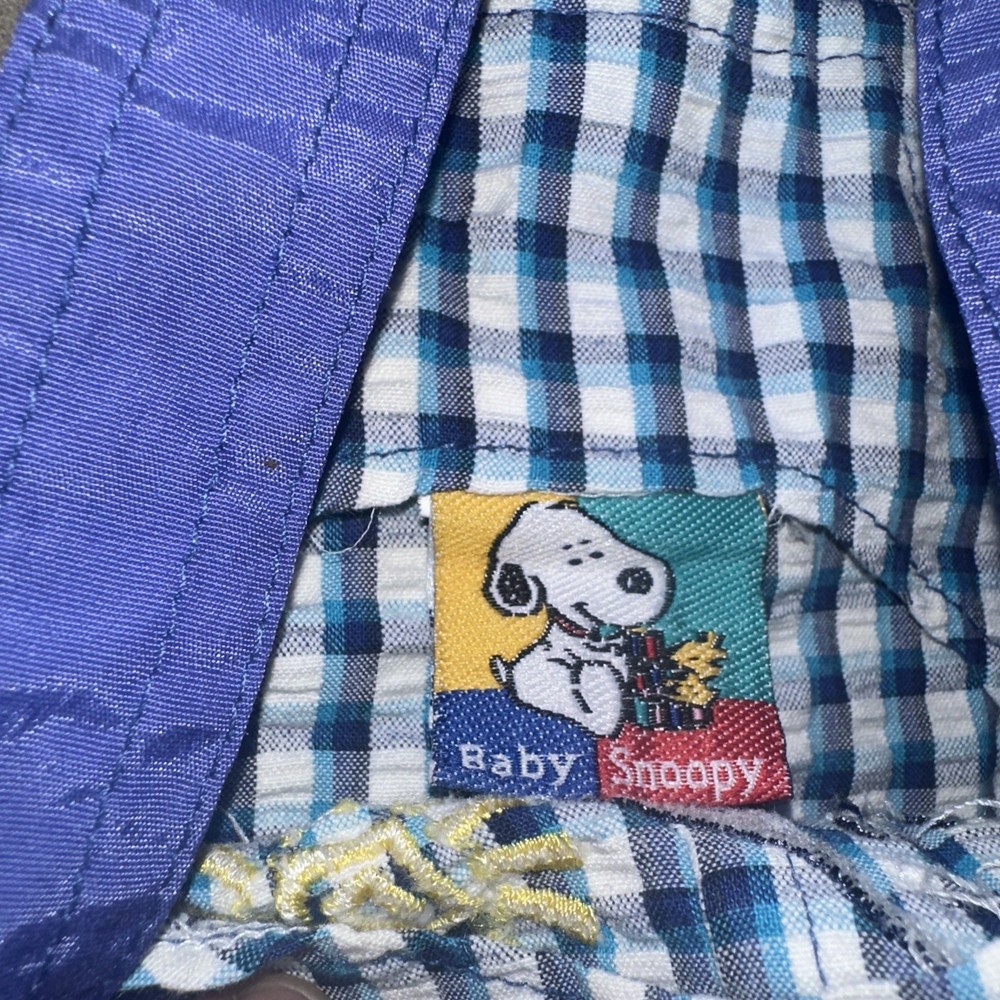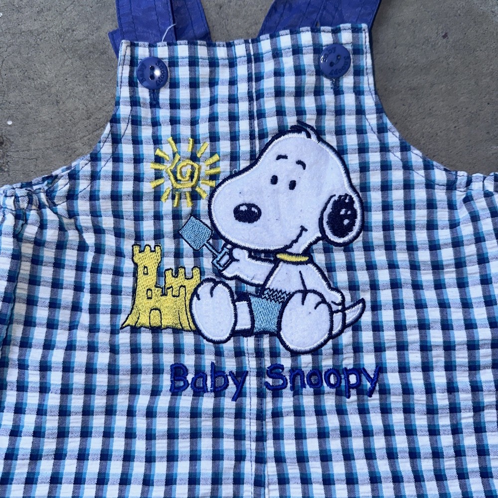 These vintage plaid baby Snoopy Woodstock explorer overalls are perfect for your little one, featuring a sleeveless design and snap closure for easy dressing. Made of 100% cotton, these overalls are machine washable and adorned with embroidered Snoopy accents, adding a playful touch to your child's outfit. The blue plaid pattern and overall style make these overalls versatile for casual occasions during the summer, fall, and spring seasons. With the iconic Peanuts character family and unisex appeal, these overalls are sure to be a hit with both parents and babies alike.