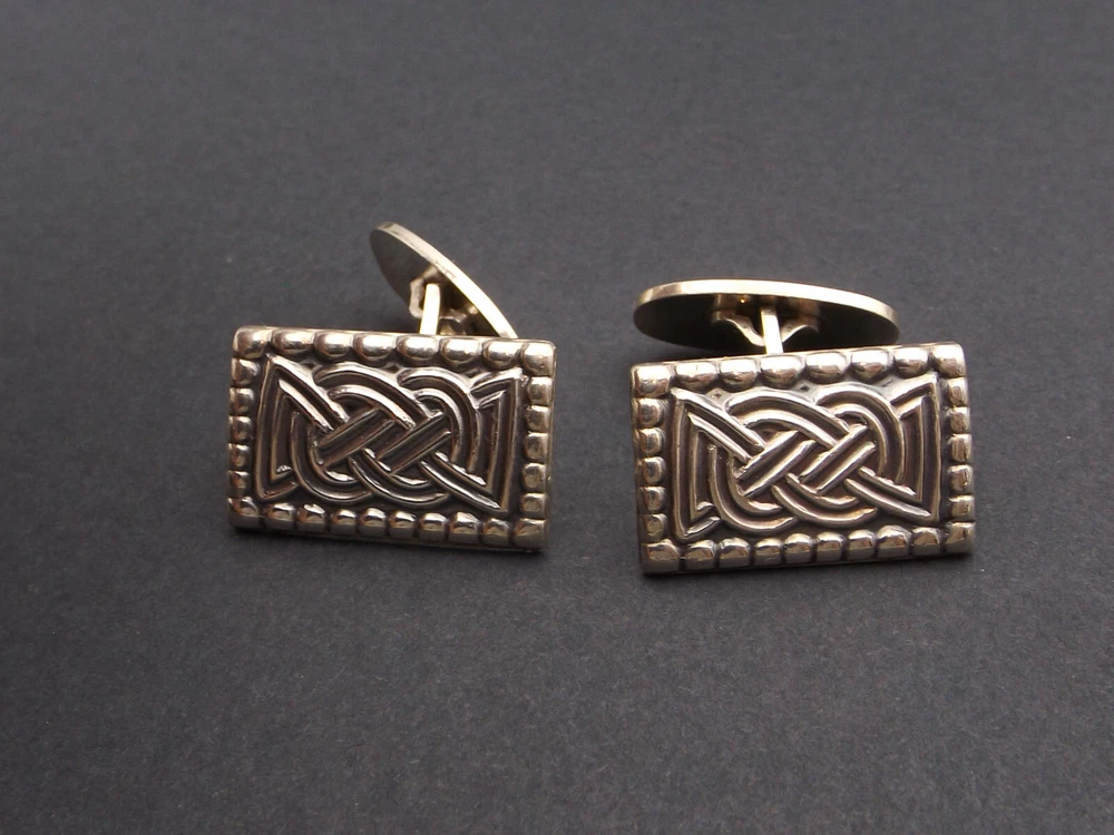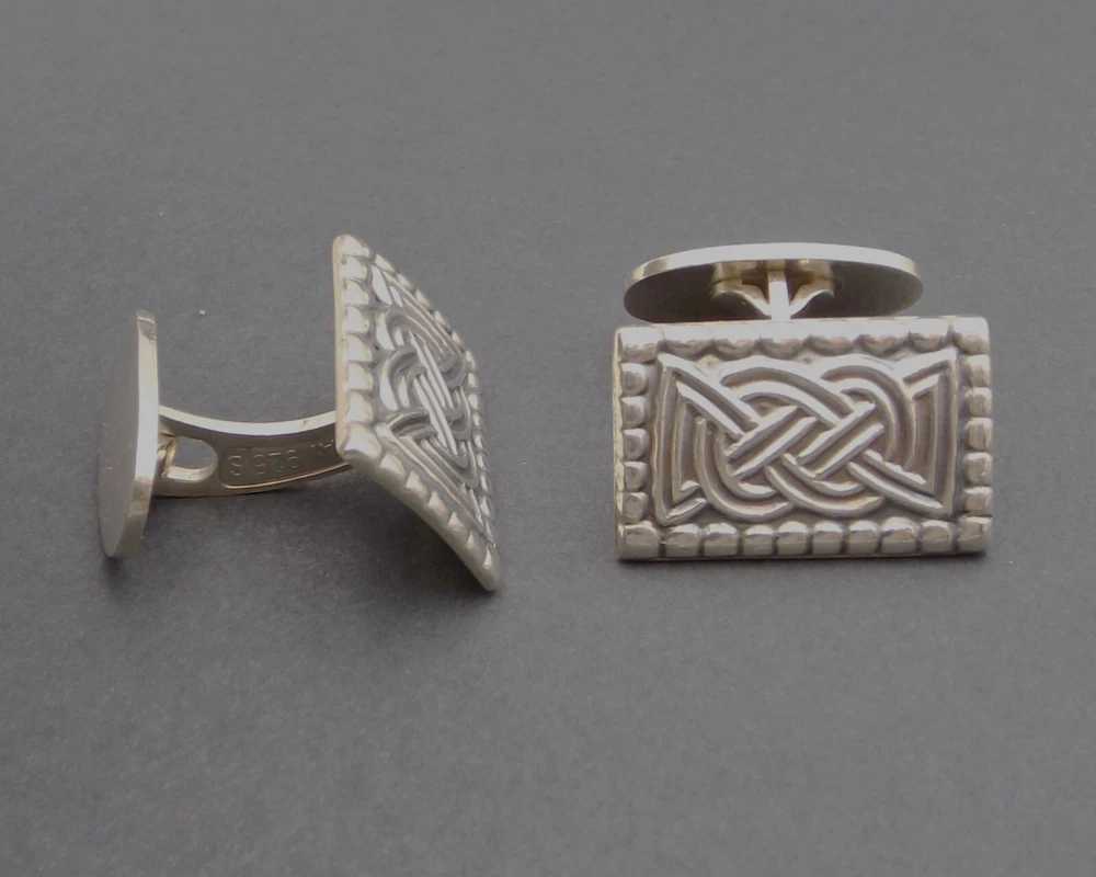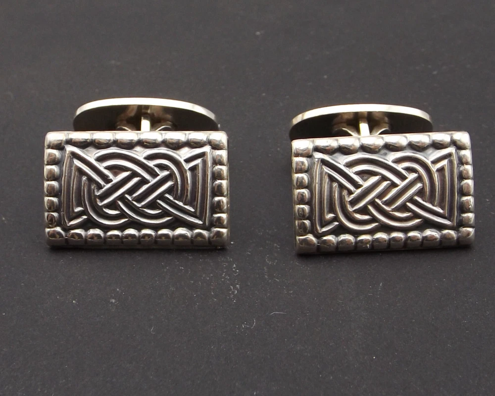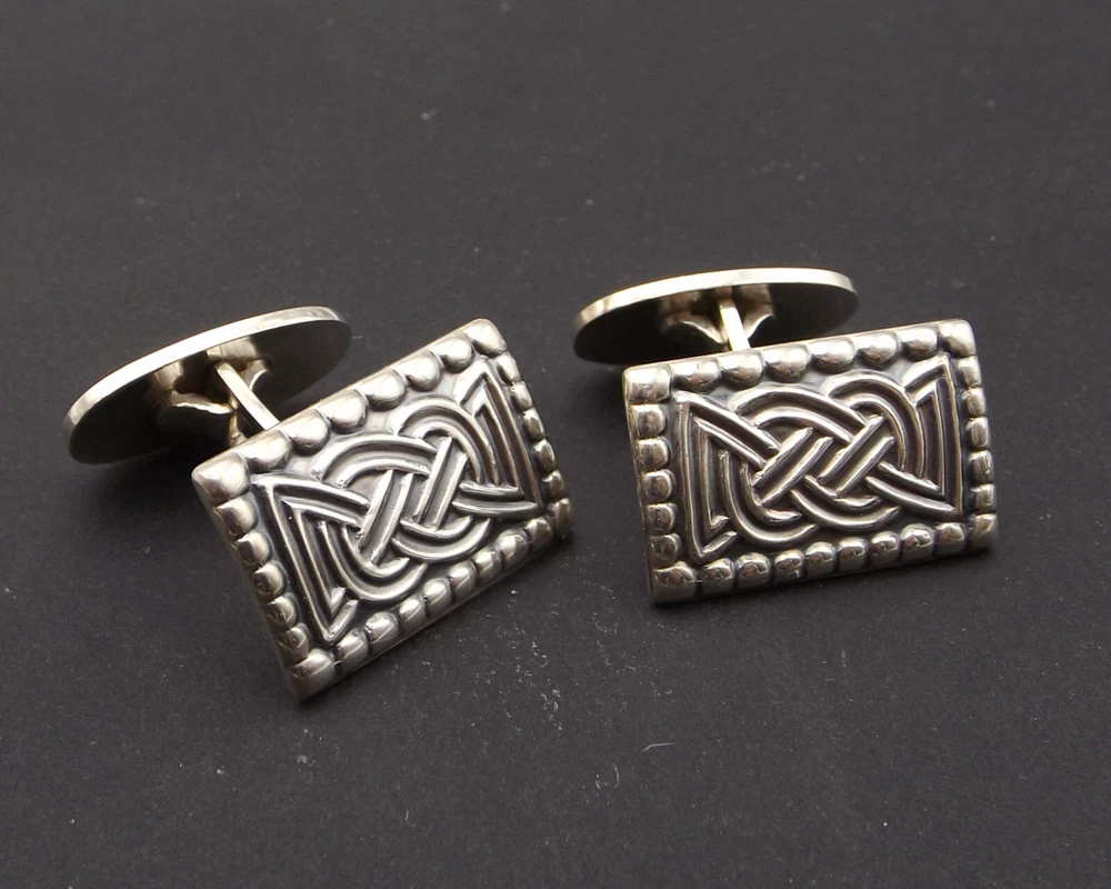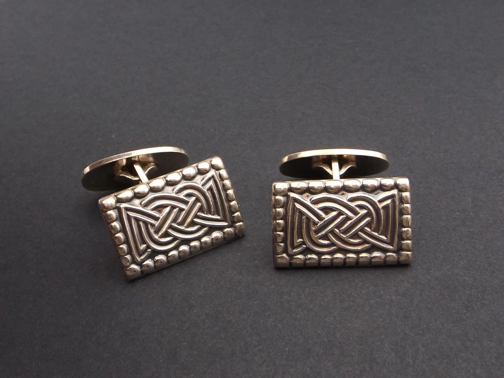 VINTAGE STERLING SILVER CUFFLINKS FROM THE SAGA SERIES BY DAVID ANDERSEN OF NORWAY OBLONG CUFFLINKS IN A CELTIC PATTERN THE MARKS ON THE BACK ARE AS FOLLOWS: OSEBERGFUNNET KOPI DA 850 KR The Andersen SAGA series, produced in the1960s, and the insiration was taken from prehistoric finds, now in the Olso Historical Museum. The Celtic Motif is based on an archeological fine at Obsberg in circa 850 AD as stated on the back marked sterling and 830 830 is a Norwegian standard of silver used in Norway until the 1970s so these cufflinks are an earlier example of this design EACH CUFFLINK MEASURES 21 X 13 MM 13/16" X 1/2" THE FRONT IS FIXED, THE BACK ELEMENT SWIVELS STUNNING DESIGN will be sent in a cufflink box please check my other items, only one postage charge Always happy to combine postage, we prefer to invoice when you are finished. We post every day Monday to Friday, and try to post same day or next day - happy to post Saturday if you ask! We mainly sell used items, so there may be wear, but we try to describe accurately - we might occasionally miss something or even completely mess things up - we are human - but never intentionally and will always try to resolve any issues. Contact me via ebay messages if you have any concerns with your purchase. Please be aware that International purchases may incur customs charges and may also be slightly delayed in customs. Any questions, just contact us via messages, we will get back to you as quickly as we can.