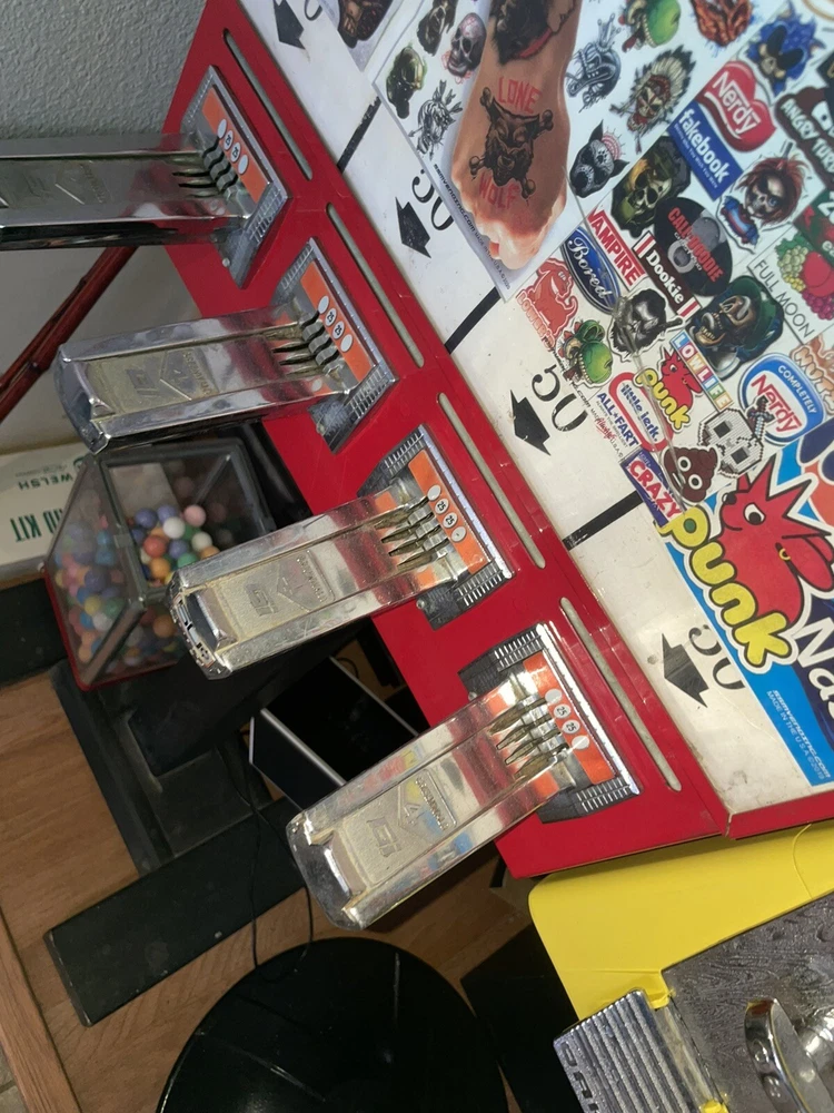 Very nice sticker vending machine four columns with keys fully functioning on a stand , local pick up only 85381 Arizona