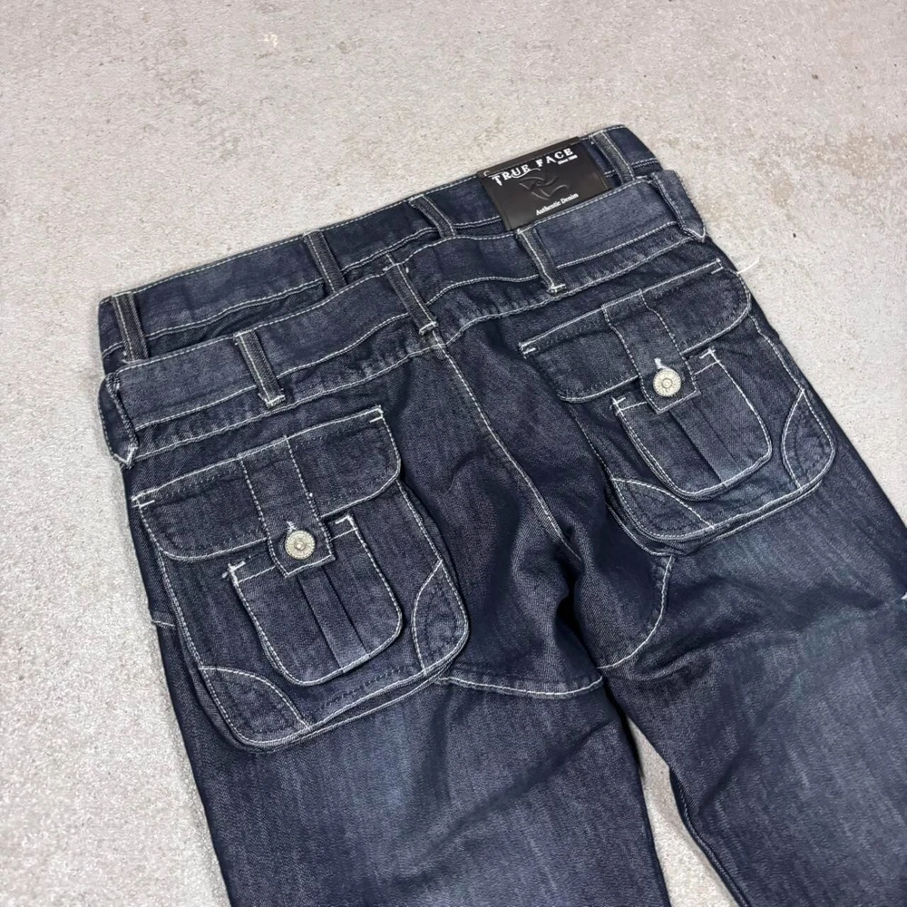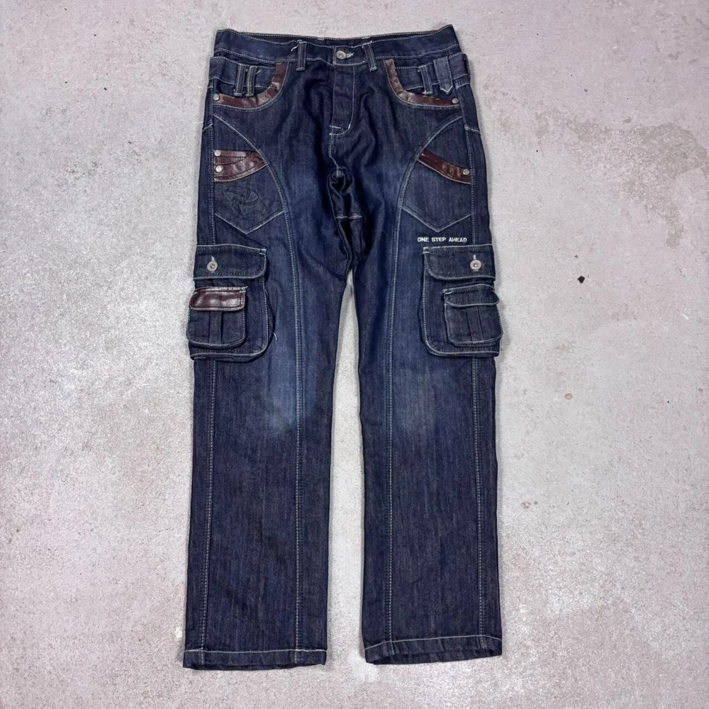 Vintage y2k 90s avant garde affliction style opium cargo jeans has some signs of wear Width: 44 cm Length: 108 cm