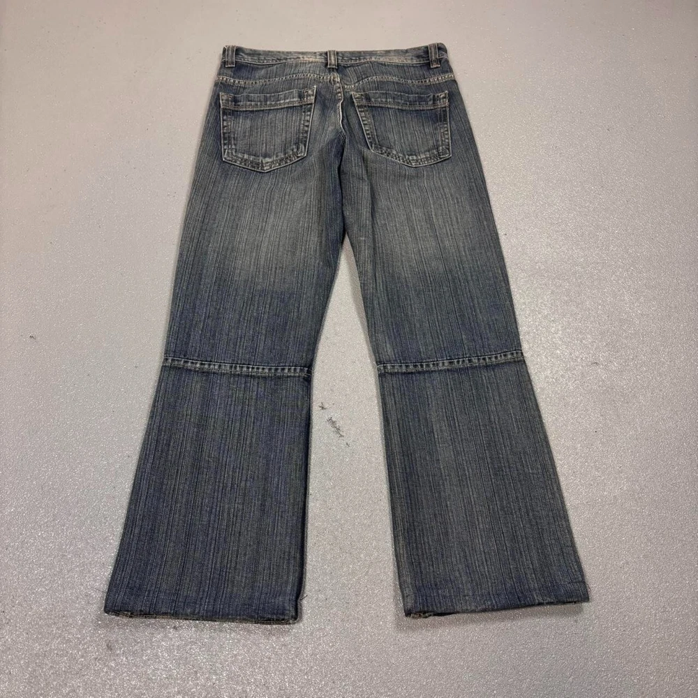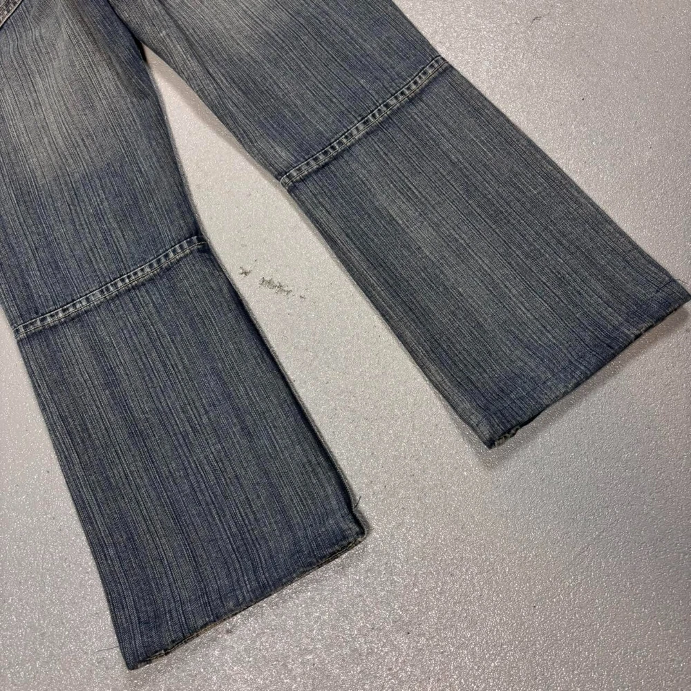 Vintage y2k 90s mud wash embroidered flared wide leg affliction style archive jeans width: 41.5cm length: 100cm