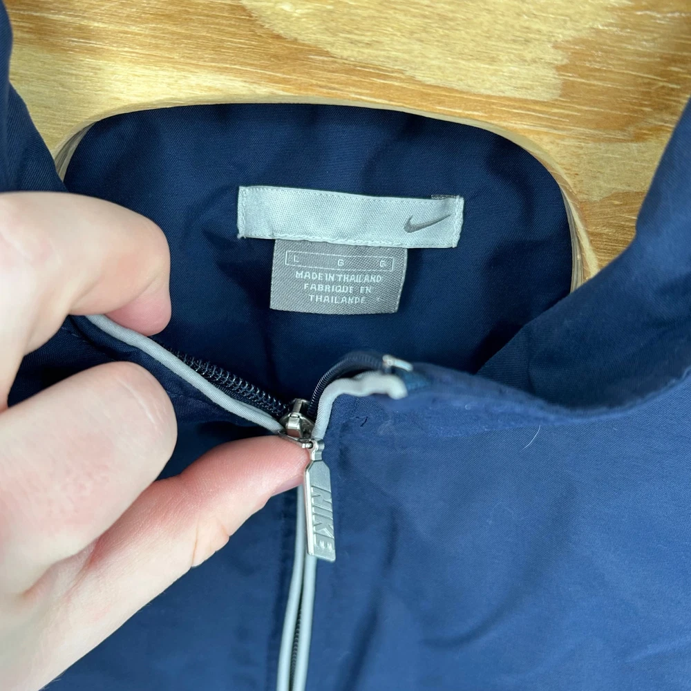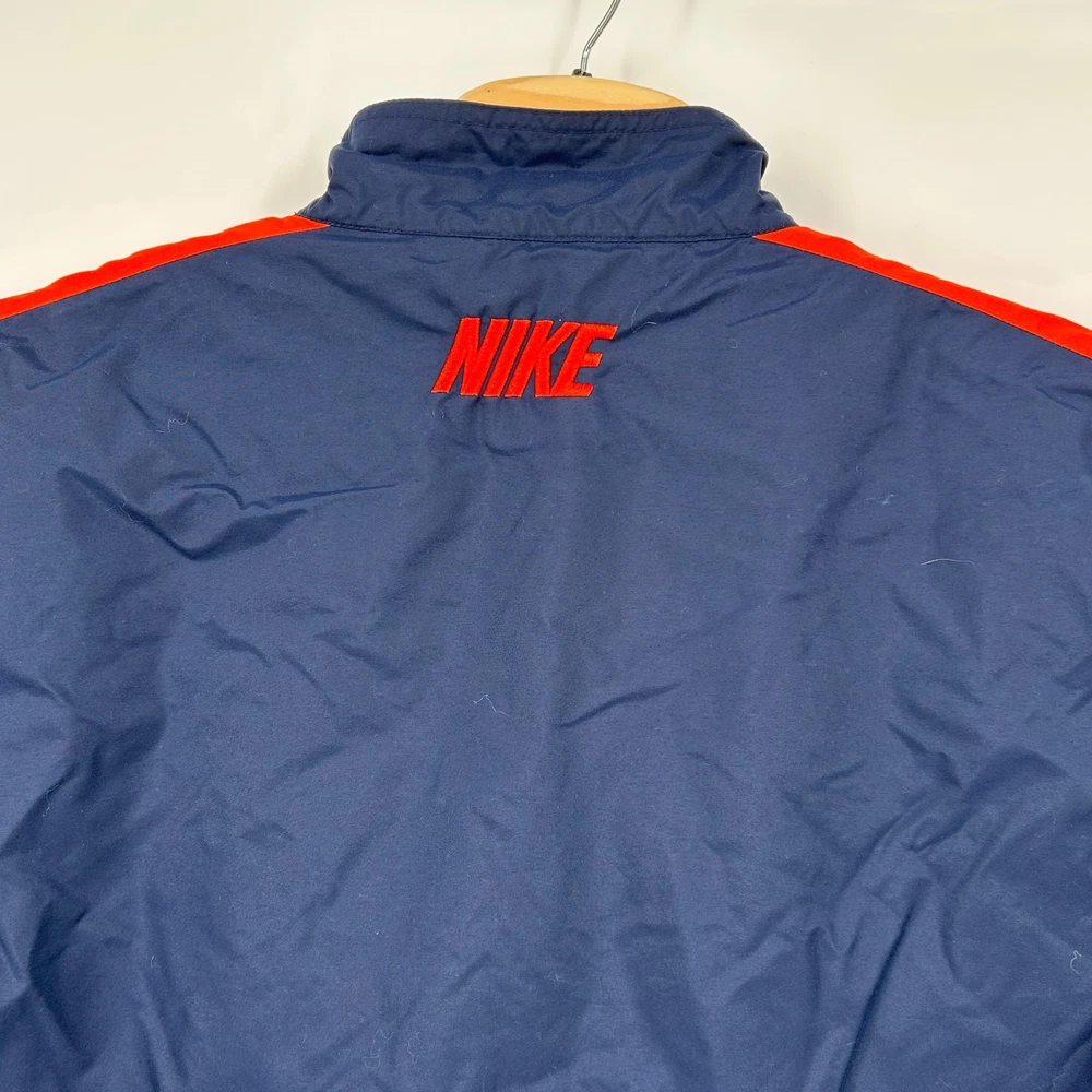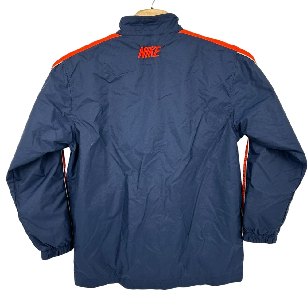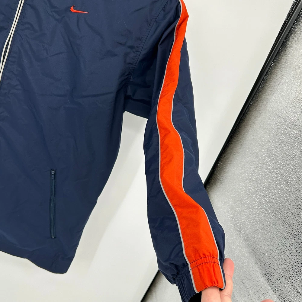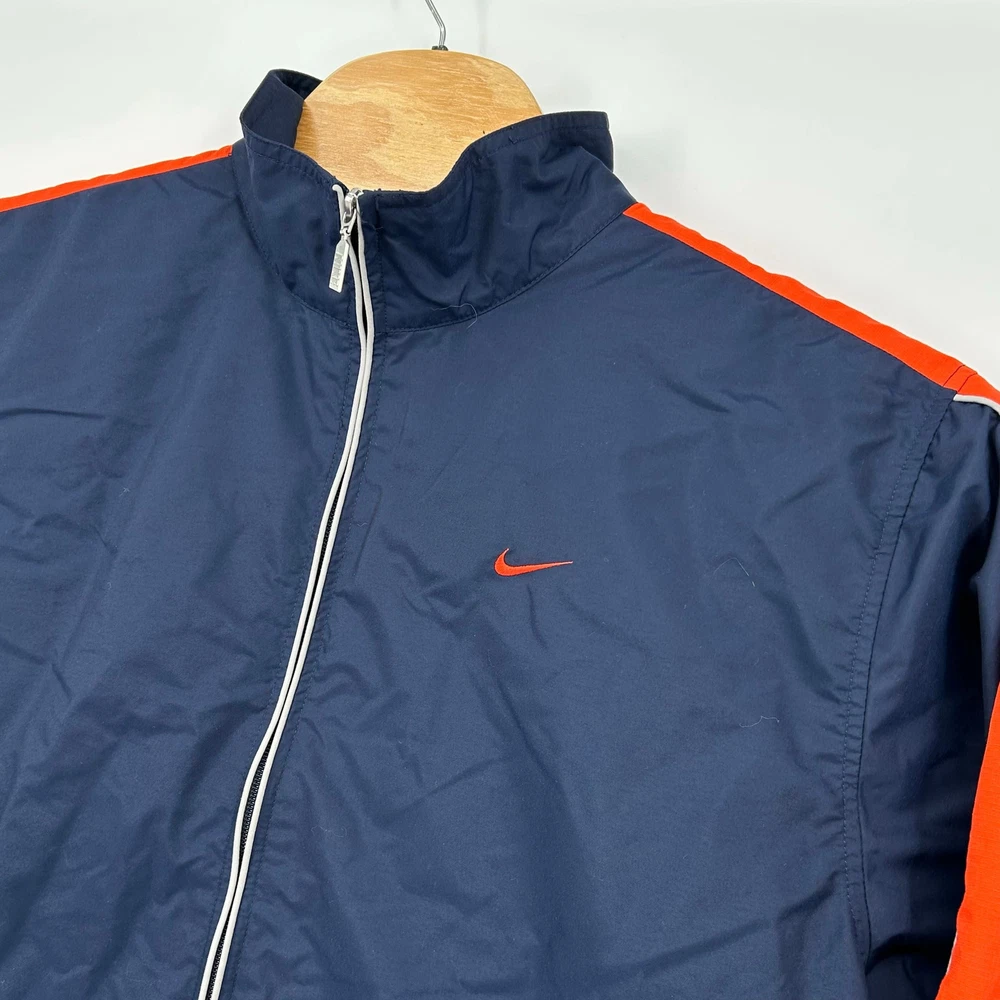 Vintage y2k men's L embroidered Nike mini swoosh block letter lined nylon full zip windbreaker jacket -chicago bears, chicago cubs colors, track jacket pit to pit: 23" length: 32" Fit's like: men's L Item is in good used condition. Look at photos to see the condition. All, if any, flaws have been pictured. See the last photo for measurements along with my suggestion of what it fits like. Please know which measurements fit you prior to purchasing, and don’t just rely on my suggestion. Feel free to ask any questions! ***Item is cross posted on several platforms***