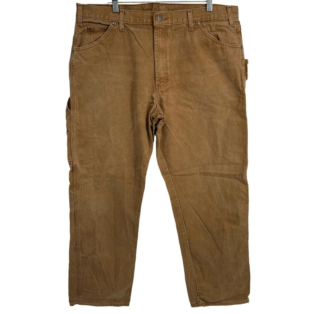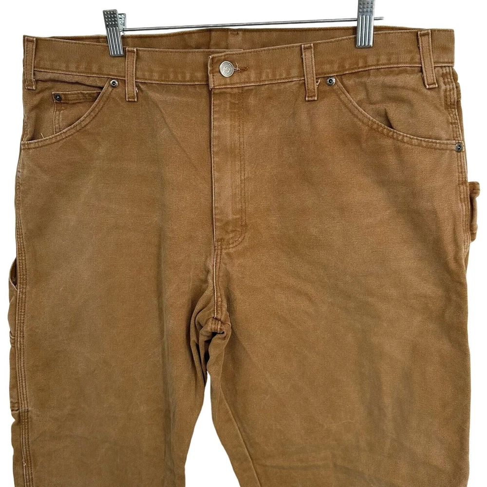 Vintage y2k men's khaki tan Dickies canvas carpenter cargo utility workwear pants Waist: 38" Inseam: 31.5" Hip: 46" Rise: 13" Leg Opening: 9" Tag Size: 38 x 32 Item is in good used condition. Look at photos to see the condition. All, if any, flaws have been pictured. See the last photo for measurements. The waist and hip measurements are measured flat and then multiplied by 2 to get the full measurement around. Please know which measurements fit you prior to purchasing, and don’t just rely on the size tag. Feel free to ask any questions! ***Item is cross posted on several platforms***