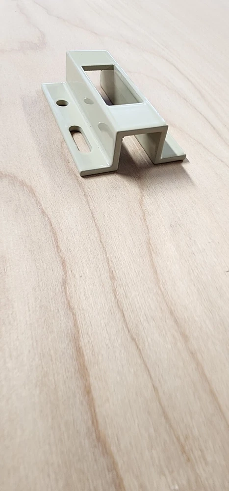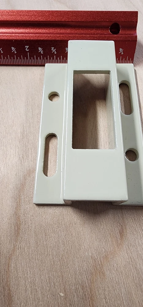 Vinyl Patio Door Lock Keep Beige. these keepers are for the Silverline Windows by Andersen. 1 11/16" wide 2 1/2" long 11/16" tall Slot for the locking arm is 1/2" wide by 1 1/4" tall If you have any question, let me know.