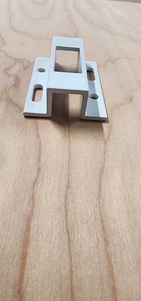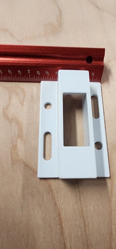 Vinyl Patio Door Lock Keep WHITE. these keepers are for the Silverline Windows by Andersen. 1 11/16" wide 2 1/2" long 11/16" tall Slot for the locking arm is 1/2" wide by 1 1/4" tall If you have any question, let me know.