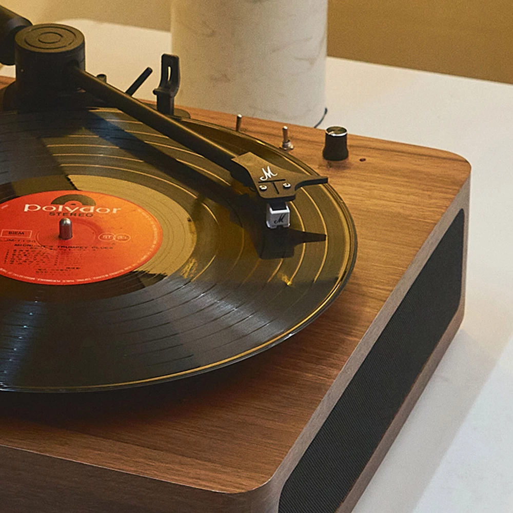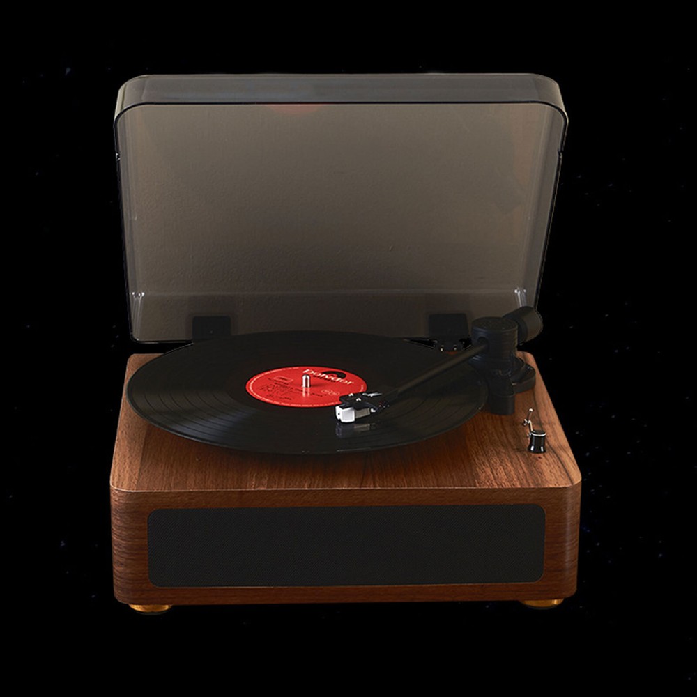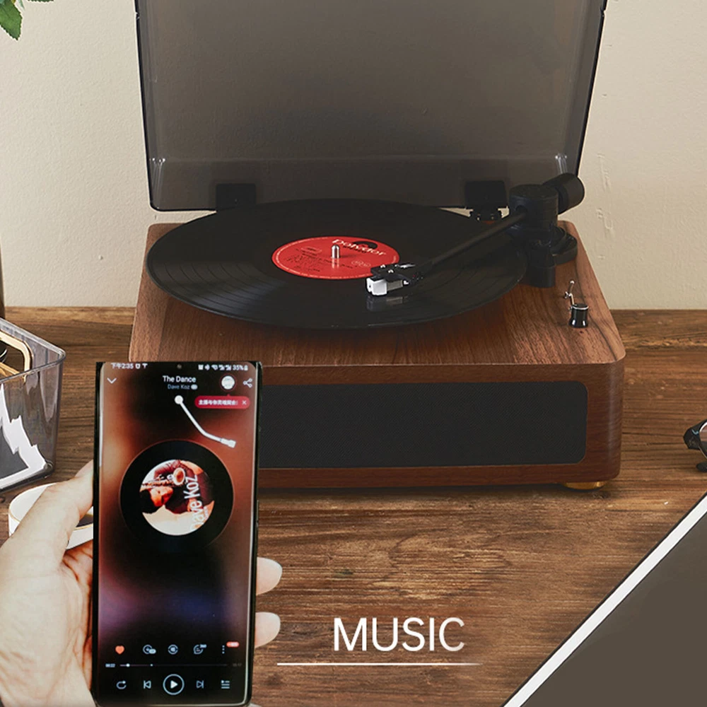 Function: 1. MM moving magnetic record player 2. Bluetooth V5.0 JL 3. Direct output 4.3.5 Audio Input Details: 1. Adapter: DC12V2A (5.5 * 2.1) 2. The phonograph split shockproof movement 3. Adjustable heavy hammer 4. Adjustable 33 and 45 speeds 5. Configuration: MM dynamic magnetic cartridge needle pressure 2.5-3.0g 6. Speaker power: 2.5 inch full frequency speaker * 2 7.56 bass disc 8. Power amplifier: 2.0 channels, 10w * 2 9.7-inch turntable 10. Support 7 inch, 10 inch and 12 inch Phonograph record