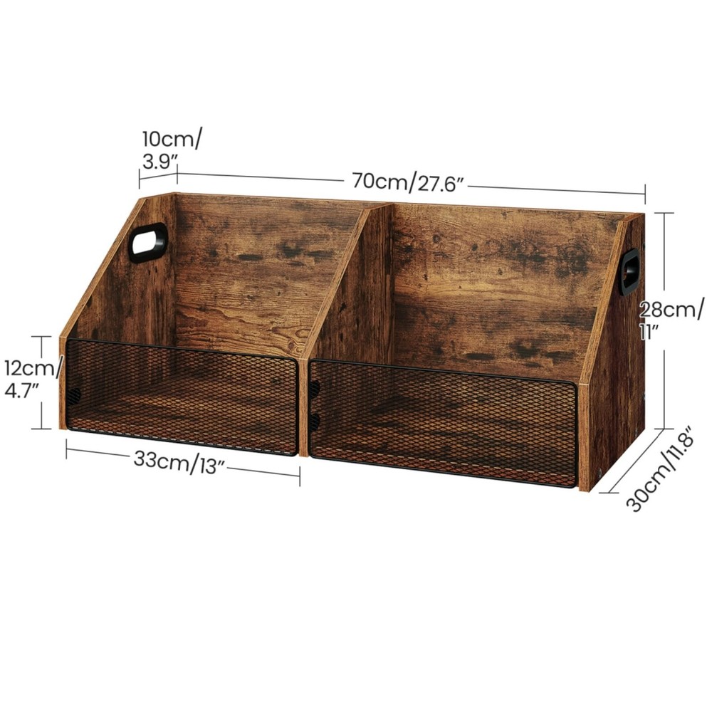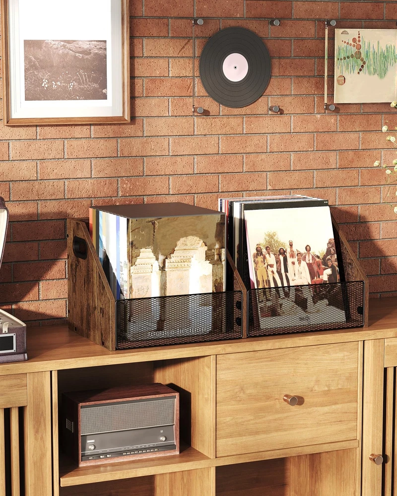 Vinyl Record Storage Double-Compartment 27.6" Record Holder with Metal Mesh F Capacious Storage Capacity: Our 2-compartment record storage, measuring 27.6"L x 11.8"W x 11"H, boasts ample room for 80+cherished records, meticulously crafting a neat, melodic sanctuary for your musical realm. Simplicity meets versatility in every inch Visible Metal Mesh: Featuring a unique metal-grid facade, this vinyl record holder delicately shelters your vinyls while revealing them in full view. Every disc stands out, inviting your favorite melodies with ease and grace Versatile Storage Solution: Beyond vinyls, this vinyl storage crate transforms into a home for albums, essential documents, playful knick-knacks, or daily essentials. Customize to your heart's desire, unlocking endless storage potential Retro Industrial Charm: Embracing a rustic brown finish, complemented by a distinct trapezoidal silhouette and intricate metal mesh, this vinyl record storage exudes industrial elegance. Enrich your living space with a unique blend of artistry and nostalgia Effortless Assembly: With a straightforward design of vinyl record storage, numbered components, and a step-by-step illustrated manual, assembling your classic and elegant vinyl storage box is a breeze. Follow the guide and create a masterpiece in minutes Vinyl Record Storage Crate Shipping We offer FREE shipping on all orders! We ship within Three business days of payment, usually sooner. We use a selection of shipping services such as UPS, FedEx, USPS etc. We only ship to the lower 48 states, no APO/FPO addresses or PO Boxes allowed. Local pickups and combined shipping options are not provided at this time. Return You can return a product for up to 30 days from the date you purchased it. Any product you return must be in the same condition you received it and in the original packaging. Please keep the receipt. Payment We accept payment by any of the following methods: PayPal Please pay as soon as possible after winning an auction, as that will allow us to post your item to you sooner! Feedback Customer satisfaction is very important to us. If you have any problem with your order, please contact us and we will do our best to make you satisfied. Contact Us If you have any queries, please contact us via ebay. We usually respond within 24 hours on weekdays. Please visit our eBay store to check out other items for sale! Thank you for shopping at our store.