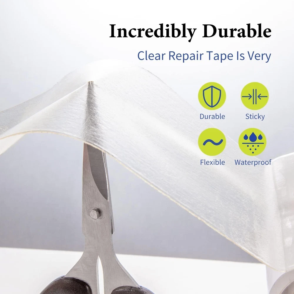 Vinyl Repair Tape Tenacious Clear Patch 1 Roll of 3.3FTx3", White,Clear Product Details Brand: TiGilt Color: White,Clear Material: Polyester Number of Items: 1 Recommended Uses For Product: Outdoor, Indoor Special Feature: Ultra Sticky,Heavy Duty,Waterproof,Tenacious Surface Recommendation: Canvas,Plastic,Cloth,Ceramic Water Resistance Level: Waterproof Size: 1 Roll of 3.3FTx3" Compatible Material: Pvc,wood,vinyl,glass,plastic,leather,paper,pool Unit Count: 1.0 Count Manufacturer: TiGilt Model: TPU-B02 Item Weight: 1.44 ounces Product Dimensions: 2 x 2 x 2.76 inches Item model number: A001-B1 Exterior: Polished Manufacturer Part Number: 168TIGL57986ABCM Special Features: Ultra Sticky,Heavy Duty,Waterproof,Tenacious Lift Type: Sticky, Repair Tape Brand: TiGilt Color: White,Clear Material: Polyester Number of Items: 1 Recommended Uses For Product: Outdoor, Indoor TiGilt Patch Repair Tape offers a tenacious tape that is perfect for repairing rips, tears, and holes in various materials, including vinyl, canvas, and fabric. This air mattress repair patch kit is heavy duty and waterproof clear, making it ideal for outdoor use. 1 Roll of 3.3ft ensures that you have enough tape to get the job done. This Vinyl repair kit for inflatables is perfect for patching up air mattresses, patio umbrella, pool covers, boat seats, and more. The kit includes durable, tenacious tape that is clear and waterproof, allowing you to create a long-lasting repair. The air mattress patch kit heavy duty makes it suitable for use in a wide variety of situations. The RV Awning Repair Tape is an essential part of any camper's toolkit. Whether you need to repair your awning, tarp, or tent, this tenacious tape will make the job easy. The kit includes vinyl patch kit for inflatables, and you can use it on any surface, thanks to its excellent adhesion properties. Keep your pool looking great with this vinyl pool patch kit. The waterproof tape clear ensures that you can patch up any holes or tears quickly and easily. The kit comes with everything you need to create a seamless, long-lasting repair, including awning repair tape and clear tenacious tape. Whether you're a camper, boater, or outdoor enthusiast, the TiGilt Tent Repair Tape has you covered. This gear aid tenacious tape repair tape is perfect for fixing rips, tears, and holes in your tent, canopy, or tonneau cover. This canvas patch kit comes with a waterproof clear tape that will keep your gear dry and protected, even in wet conditions.