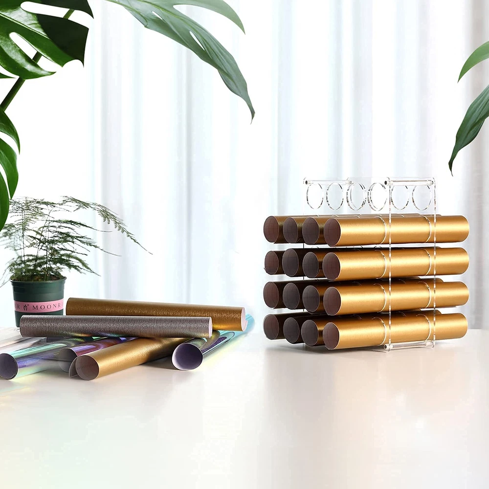 VINYL ROLL STORANGE - This vinyl holder has excellent storage and organization features and can hold up to 20 vinyl rolls. It keeps your desk clean and tidy, no more digging through drawers to find your desired color of vinyl! ACRYLIC MATERIAL - Advantages: good toughness, not easy to break, strong repairability. The vinyl storage rack is made of premium clear acrylic, it is durable enough to resist scrape or damage on the surface, lightweight and exquisite. STURDY VINYL ROLL ORGANIZERS - Vinyl storage rack is removable and light,so its installation can be completed within one minute. It can bear a maximum load of 15 IB, which concluded from the test. PRODUCT DETAILS - This medium vinyl roll holder is 12x10 Inch with 20 holes, each hole size is 2 Inch. Please check the size carefully before purchasing the product. 100% AFTER SERVICE - All vinyl rack are carefully checked and packaged before shipping. We provide a seven-day no-reason returning and refunding service. If there’re any problems with the product, please don’t hesitate to contact us at any time.