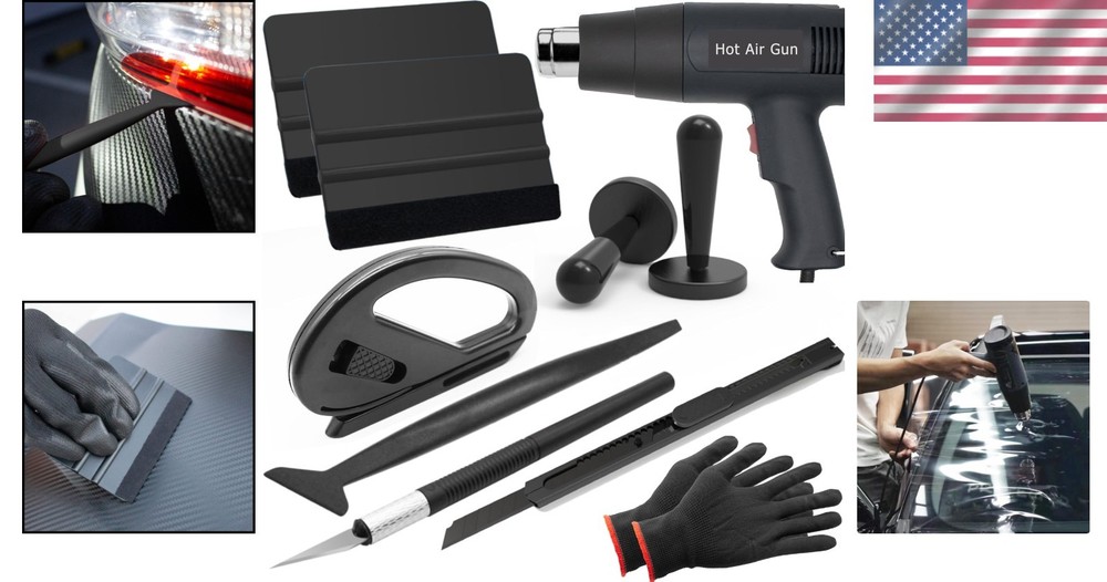Vinyl Wrap Heat Gun Kit Car 9-in-1 Squeegees Cutter Magnet Tint Tools ‹ › ‹ › ‹ › ‹ › ‹ › ‹ › ‹ › ‹ › Vinyl Wrap Heat Gun Kit: 9-in-1 Car Wrapping Tools Complete Kit Includes: 2 x Felt Squeegees 1 x Heat Gun 1 x Wrapping Knife 1 x Vinyl Cutter 1 x Magnet 1 x Wrapping Squeegee 1 x Pair of Working Gloves Features: Designed for both beginners and professionals, catering to all wrapping needs. Window Tinting and Wallpaper Smoothing: Ideal for automotive film, window tints, and home projects. Squeegees with felt: Efficiently remove bubbles and smooth surfaces without scratching. Innovative Vinyl Magnet: Adsorbs securely onto your vehicle and various metals for added convenience. Safe Vinyl Cutter: Effortlessly cut the film to size with a protective blade design for your safety. Benefits: Comprehensive tool kit enables proficient vinyl and window tint installation. Experience the ease of use regardless of your skill level. Protect your vehicle's surface while ensuring precision during application and cutting. Versatile tools suited for automotive, residential, and creative projects. Makes wrapping, tinting, and smoothing a breeze while ensuring a flawless finish. Why Choose Our Vinyl Wrap Heat Gun Kit? Elevate your car wrapping and tinting projects with our all-in-one Vinyl Wrap Heat Gun Kit. This carefully curated kit not only simplifies the vinyl application process with high-quality tools but also ensures a professional finish every time. From removing bubbles effectively to precise cutting, experience the difference of using workmanship tools designed for quality results. Perfect for DIY enthusiasts and professionals alike, you'll achieve a seamless application that your car deserves. Don't compromise on quality—invest in our Vinyl Wrap Heat Gun Kit today and transform your wrapping experience! Shipping Free & Fast Shipping - We offer free shipping to most of the USA with a normal delivery time of 3-7 days. However, due to the current situation, additional delivery time (up to 3 weeks) may be required for some items. Alternative Carriers - We may use alternative carriers (e.g. USPS, FedEx, UPS, etc.) to ensure your package arrives safely and on time. Due to the use of multiple carriers, we are unable to provide a tracking number automatically. Handling Time - Orders are processed and shipped within 1-2 business days of receiving cleared payment. Shipping Restrictions - Shipping to Alaska, Hawaii, Puerto Rico, Guam, and other US territories may incur shipping charges or delivery restrictions. Please contact us before ordering, or your order can be refunded/cancelled. State Restrictions - There may be restrictions based on your state of purchase. For example, certain items may not be shipped to California due to state regulations. Contact for Tracking Updates - If you require tracking updates or have any concerns about the delivery of your order, please feel free to contact us, and we will be happy to assist you. Return 30-Day Hassle-Free Returns - We want you to be completely satisfied with your purchase. If you are not, you can return the item within 30 days of receiving it for a full refund or exchange. Easy Return Process - To start a return, simply contact us and we will provide you with a prepaid return shipping label and detailed instructions. Restocking Fee - There are no restocking fees for returns. However, the buyer is responsible for return shipping costs if the return is not due to a seller's error. Refund Processing Time - Refunds will be processed within 5 business days of receiving the returned item in its condition. Payment We accept all major credit cards, PayPal, and Apple Pay for your convenience. Your payment information is secure and encrypted to ensure a safe and seamless transaction. Please complete your payment within 3 days of purchase to avoid any delays in shipping. Feedback Your feedback is extremely important to us. We strive to provide the best products and customer service possible. If you are satisfied with your purchase, please take a moment to leave us a positive review. If you have any concerns or issues with your order, please contact us before leaving negative feedback. We are committed to resolving any problems and ensuring your satisfaction. Contact Us If you have any questions or concerns, please feel free to out to our customer support team. You can contact us through the eBay messaging system. We are available Monday to Friday, 9:00 am to 5:00 pm EST, and we will do our best to respond to your inquiry within 24 hours. Buy it now and enjoy a pleasant shopping experience! MPN: Heat_Gun_for_Vinyl_Wrap Unit Quantity: 1 Format: Kit,Set Type: Heat Transfer Vinyl Handmade: No