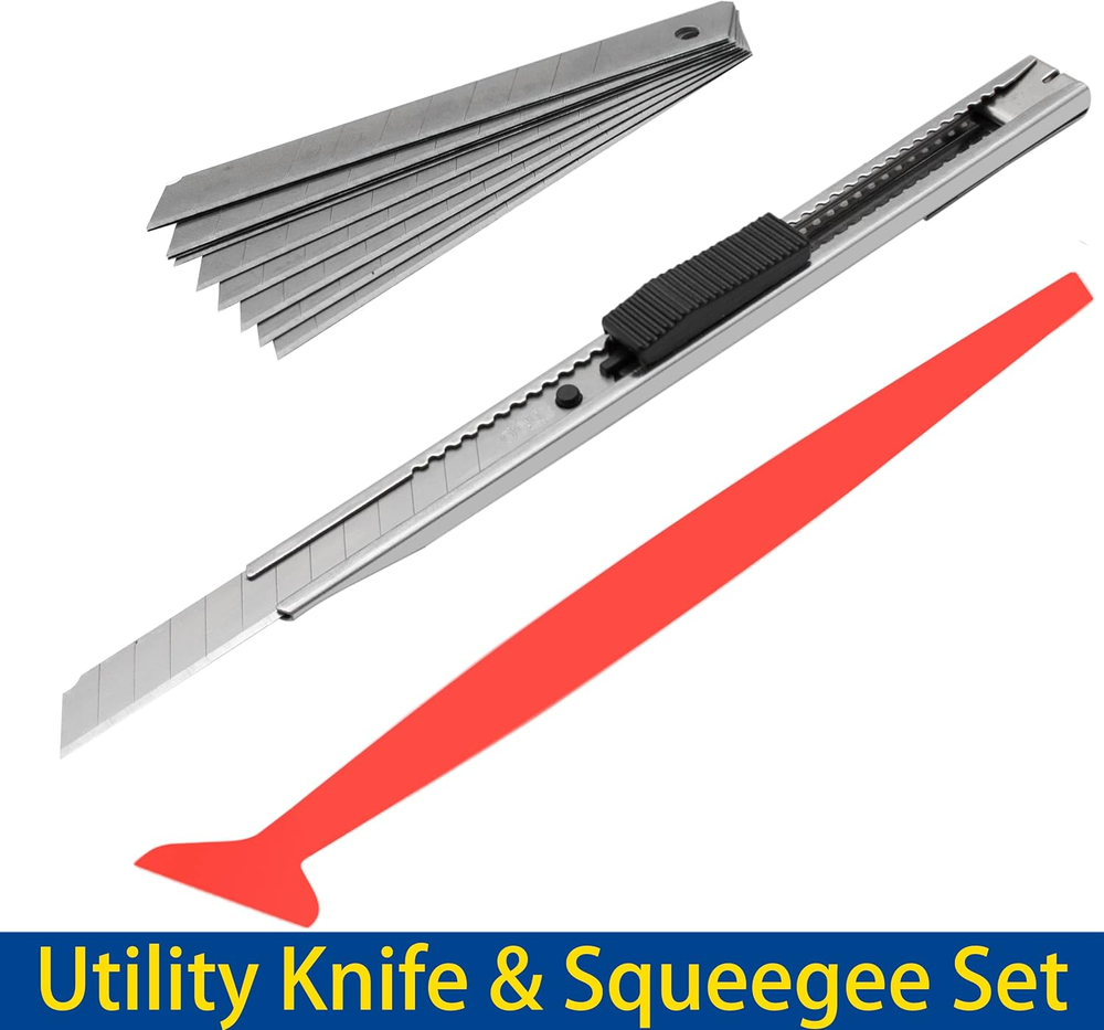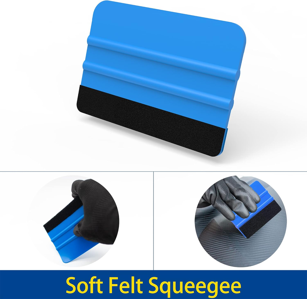 Vinyl Wrap Tool Kit: This car film wrapping kit contains most vinyl wrap tools you need. It's designed for car vinyl wrap, window tinting, vinyl installation and automotive sun protection tinting. Vinyl Wrap Squeegee: The felt squeegee could make the surface of the film fit your car better. Without leaving any air bubbles, it could also protect your car surface during the vinyl wrapping. Vinyl Edge Wrap Squeegee: 7 in 1 squeegee kit is designed for different car edges. It contains 14 different shape edge to wrap the film flexibly. No more worry about some edges like windows. Vinyl Wrap Cutter: The utility knife is used to make the edge vinyl cutting smoothly. With the red one, you could wrap some simple parts quickly. We also provide 10 Pcs of blades as a replacement. The film cutter could cut the film safely before wrapping. Vinyl Wrap Gloves: Protecting your hand efficiently. Before your wrapping, the cloth could be used to clean your car, windows and all the surface without any water stains. Product description Spanno Vinyl Wrap Magnet Holder Tools Kit Our kit includes all the essential tools you need to apply tint to your car windows, including a felt squeegee, utility knife, soft squeegee, and more. But why stop there? Take your car customization game to the next level with our additional accessories, including a vinyl cutter to have a safe cutting, magnet holders to keep your film organized, fiber cloth and working gloves for a clean and safe application process. Vinyl Cutter This vinyl cutter could cut your film safely before wrapping. Car Magnet Holder When you working with a large film, it could hold it and keep it in place. Felt Squeegee To wrap your film better without leaving any bubbles and scratches. Soft Squeegee It could help you deal with some tiny edges in a flexible way.