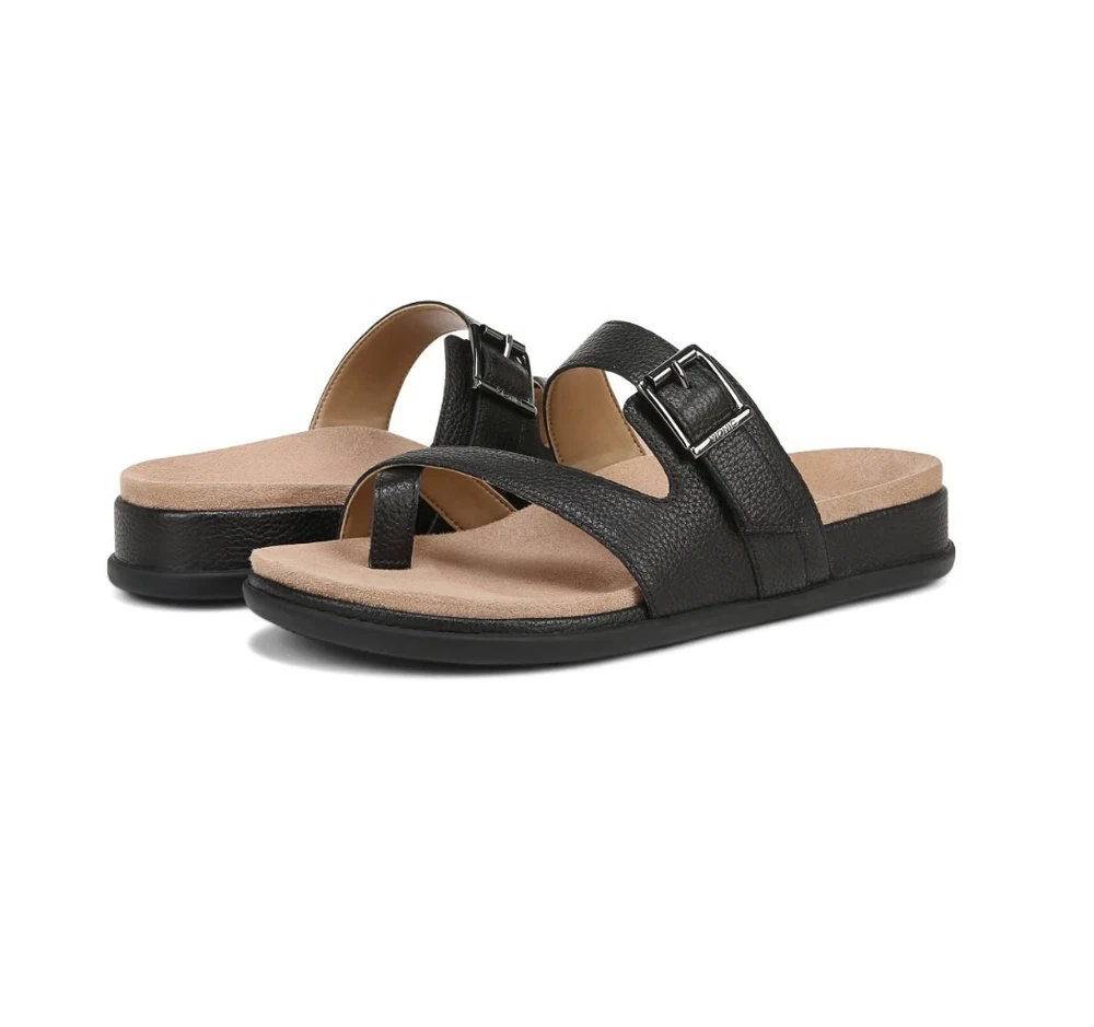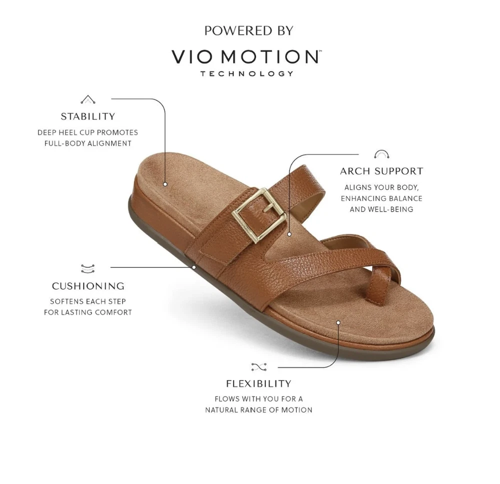 Vionic Carmela Strappy Slide Sandal - Full Color - Medium - Flash Sale 2026!!! Description Delight in Carmela toe-post loop sandal with just enough coverage and an adjustable hook-loop strap-wrapped footbed designed for optimal comfort. Designed with exclusive alignment technology to balance the whole you Details Uppers: Leather. Footbed: Microfiber Covered EVA. Built-in VIO MOTION Technology footbed featuring contoured arch support, with shock-absorbing cushioning, deep heel cup to provide stability, and forefoot flexibility Durable synthetic outsole designed to withstand everyday wear. Heel Height:.1.5". Platform Height: .75". Biomechanically designed to hug your arches, Vionic Technology helps support natural alignment from the ground up. Received APMA Seal of Acceptance. Fit & Care Available in women's whole and half sizes in two widths. Medium width, sizes 5-10, 11, 12, 13. Wide width, sizes 5, 6-10, 11, 12. For the greatest comfort, we recommend wearing your new Vionic footwear for just a few hours for the first few days to allow your feet to adjust to the new level of orthotic comfort and support. Within one to two weeks you should find the product completely comfortable and supportive. To preserve the appearance of your Vionic shoes, we recommend that you clean the leather, if needed, using a dry, cotton cloth to wipe away dirt or dust. Keep leather footwear away from direct heat to prevent the leather from drying out. If your shoes or sandals become wet, please allow them to dry naturally. We recommend that you test any cleaning product by applying a small amount to a discreet area and allowing it to dry. Do not use cleaners which contain acid or detergents, as they may damage and prematurely age the leather.