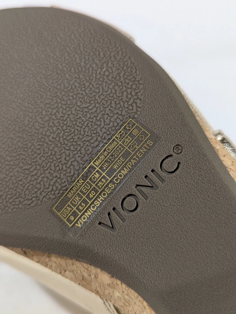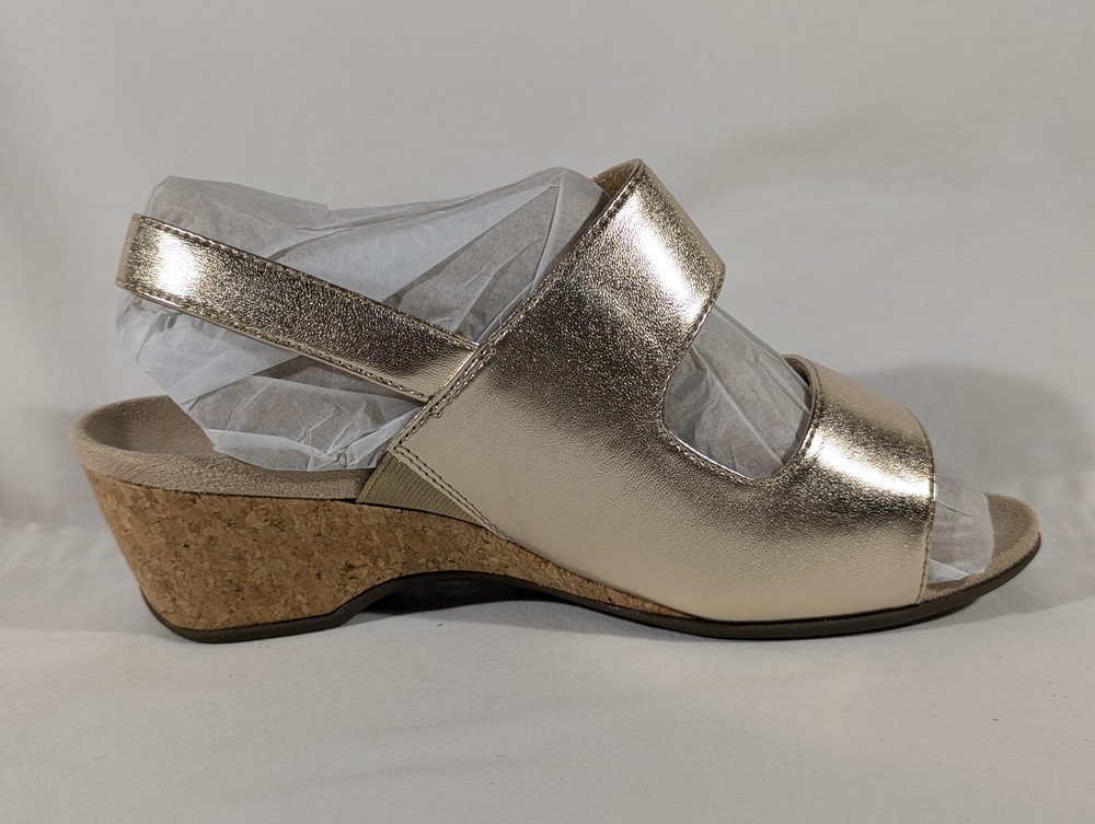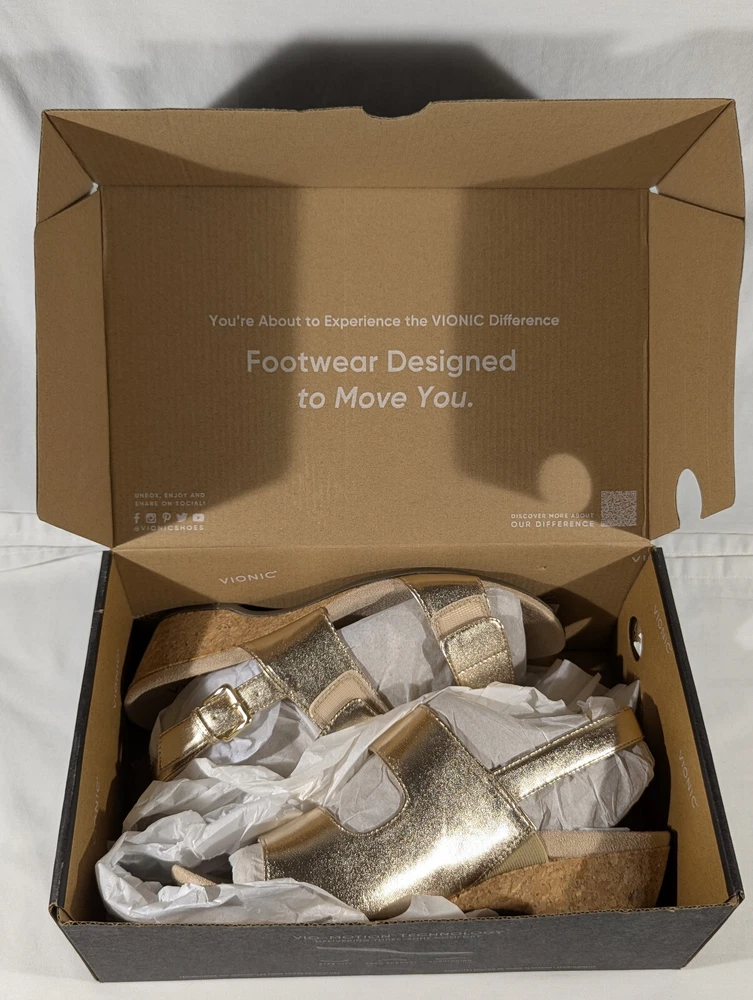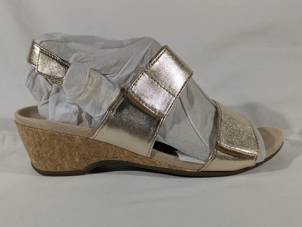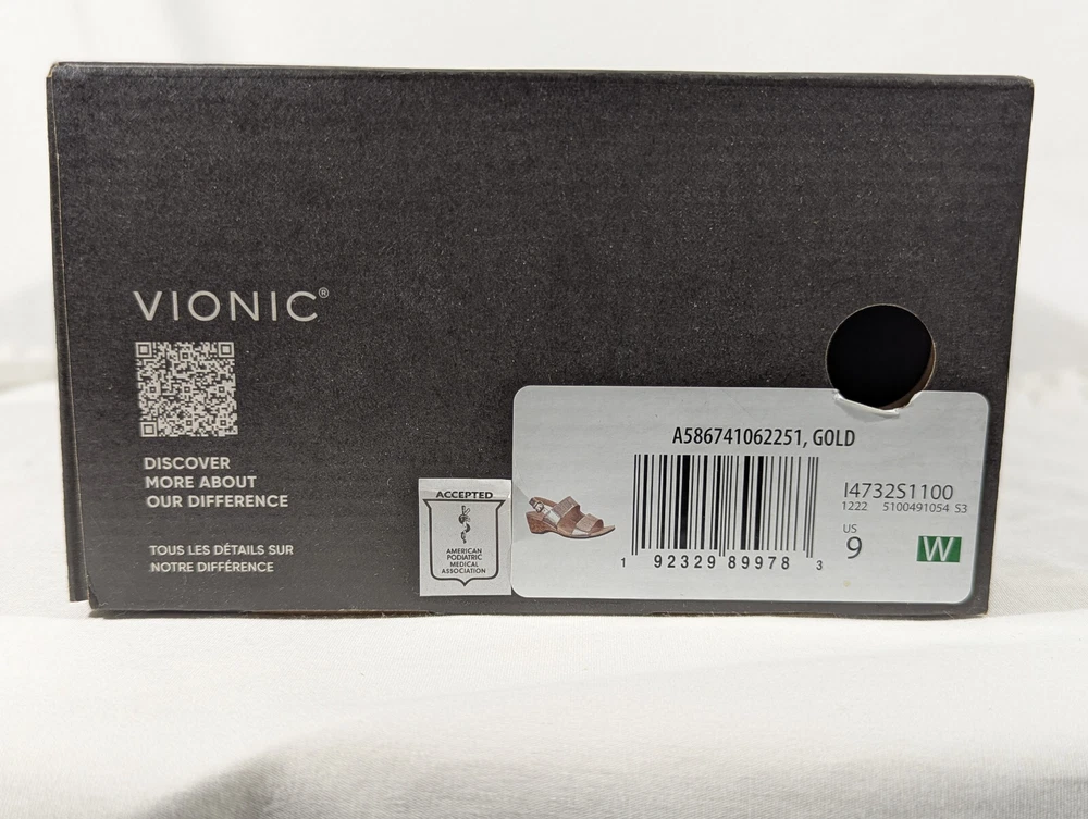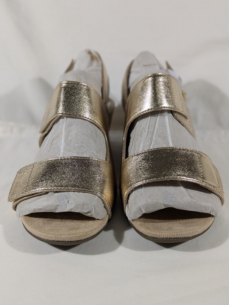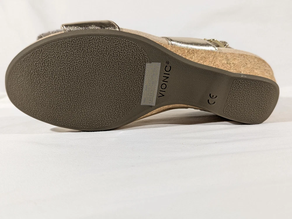 Vionic Marian Women Gold Wedge Sandals Size 9 Wide with box New CONDITION Overall excellent condition. Very minor mark on the top of the left shoe. No other damage. Look at the pictures closely as this is the exact item you're purchasing AND IS AS IS. Please ask any questions before buying. Disclaimer ** Please note: We put up a varied collection of items and are not experts in every area, so descriptions are our best guess as to what something is. We try to research each item to the best of our ability, but it is the buyer's responsibility to know what they are buying. ** Payments Payment is due the day of the sale or close of auction. Shipping We use eBay's calculated shipping to determine the cost based on the size & weight of the box, along with the shipping destination. Occasionally eBay's calculated shipping may over-calculate. We refund any overages that may occur. Click here to view our other auctions and items for sale. We ship to the U.S. and internationally through the eBay International Shipping program.