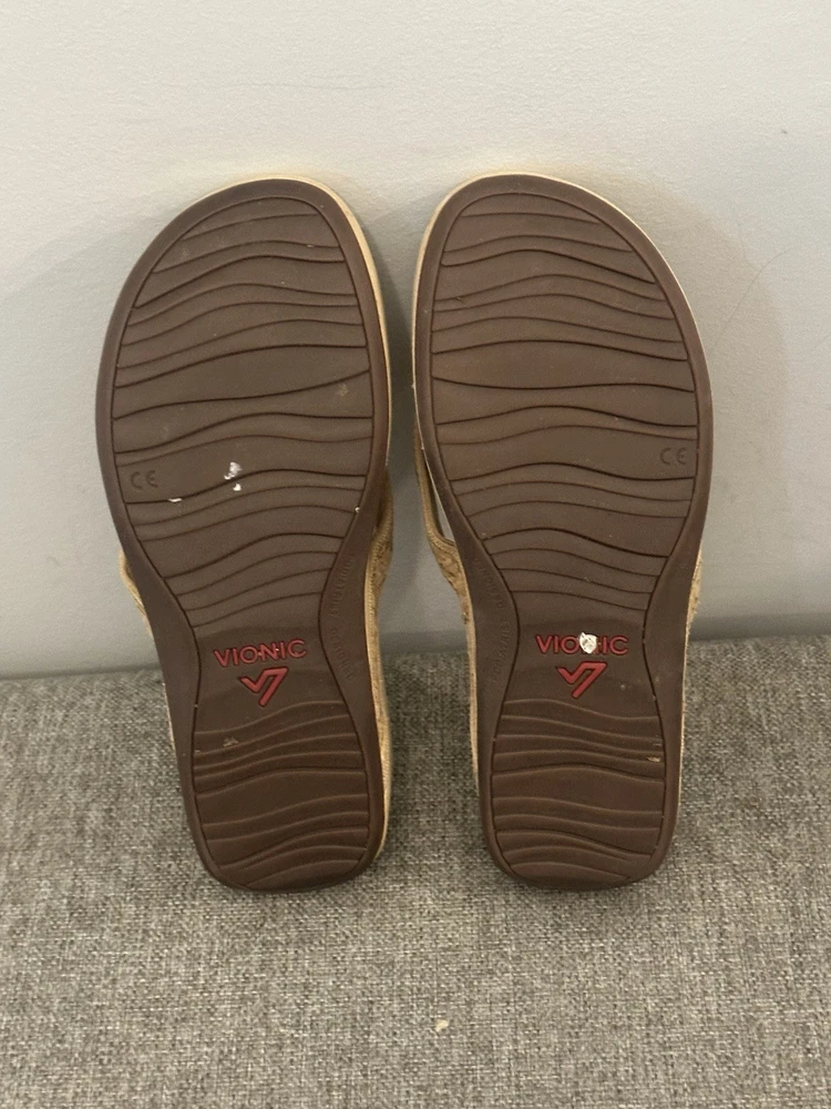 Color: Brown Model: Vionic High Tide Features: Comfort, Arch Support, Orthopedic Pattern: Solid Vintage: No Type: Sandal Brand: Vionic Department: Women Heel Height: Mid (2-2.9 in) Character: Flop UK Shoe Size: 8 AU Shoe Size: 10 Style: Thong Heel Style: Wedge EU Shoe Size: 42 US Shoe Size: 10 Closure: Slip On Upper Material: Synthetic Customized: No Country of Origin: China Accents: Logo