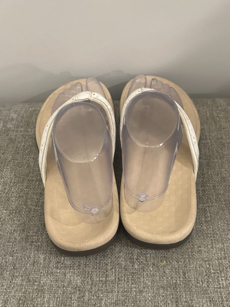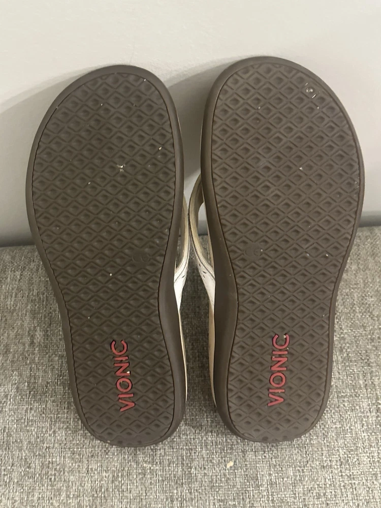Vionic Women’s White Leather Slip On Thong Sandal Size 7